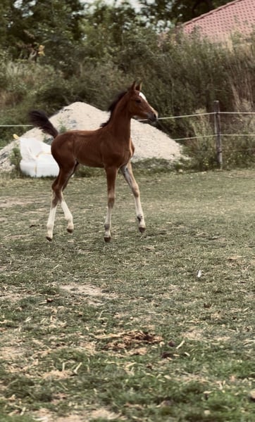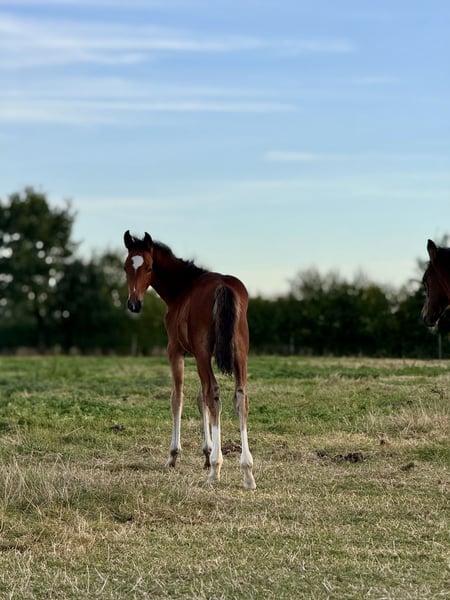 Sprzedajemy nasze źrebię klaczowe z dnia 21.06.2025 To piękne źrebię pochodzi od Comme il faut, jednego z najlepszych ogierów skokowych wszech czasów. Ze strony matki ma legendarną krew For Pleasure. Prawdziwy klejnot do hodowli i sportu. Nasze źrebię rośnie w odpowiednich warunkach - jest na zewnątrz w mieszanym stadzie dzień i noc, doskonale zsocjalizowane i już teraz obdarzone dużą charyzmą, poprawną budową i elastycznymi ruchami. Źrebię może pozostać u nas na dalszą hodowlę. Tel.: +49 15175066343
