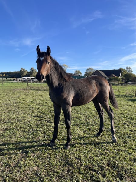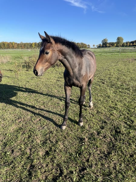 Bildschönes, charakterstarkes Stutfohlen von A La Carte NRW x Casantos x Voltaire! Dieses Stutfohlen verfügt über drei sehr gute GGA, ist halfterführig und kennt bereits den Hufschmied. Sie überzeugt zudem mit ihrem liebevollen, menschenbezogenen Charakter und ihr korrektes Gebäude. Ihr Vater A LA CARTE NRW ist ein hochmoderner Sportler, der unter Marcus Ehning international siegreich war sowie mehrfach erfolgreich in Nationenpreisen und Großen Preisen. Ihre Mutter Belia erreichte ebenfalls ihre VbPr. durch Turnierergebnisse bis Klasse M. Bei Interesse gerne melden :)