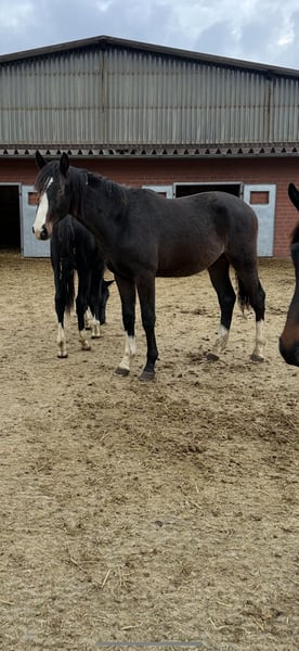 Schweren Herzen trennen wir uns von unserem selbstgezogenen dressurbetonten Hengst . Er wird nächstes Jahr 2 Jahre alt . Er wurde im Jahr 2024 vom Westf.-Pferdestammbuch für die Auktion zugelassen . Wurde vollständig entwurmt , war beim Anhänger fahren super artig , ist gesund , geht regelmäßig zum Schmied und wächst derzeit in einer Herde auf . Super unkompliziert und schmusig im Umgang . Er kann gerne nach Absprache besichtigt werden . Vater ist Eleven HW ( v.Escamillo) Mutter ist von Cristallo 1. Weiteres auf Anfrage . Keine Händler !!