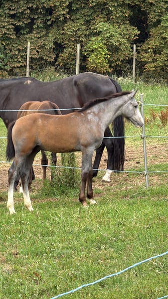 Westfälisches Hengstfohlen aus April 2025 von Zoom – Doppelveranlagung Zum Verkauf steht ein westfälisches Hengstfohlen des Jahrgangs 2025 aus moderner, sportlich geprägter Doppelveranlagungs-Abstammung. Das Fohlen überzeugt durch harmonischen Körperbau, korrektes Fundament sowie taktsichere, elastische Bewegungen. Abstammung Vater: Zoom (Westf.) Doppelveranlagter Hengst, der für Rittigkeit, Leistungsbereitschaft und vielseitige sportliche Nutzung steht. Mutterlinie: über Coupie (Westf.) – ELP R/S Münster-Handorf Noten: 8,49 / 7,48 / 9,33 Linie Coupe de Coeur – Calido – Cantus In der weiteren Mutterlinie Cordalme und Cor de la Bryère. Aufzucht & Entwicklung Der Hengst wächst direkt beim Züchter auf und kommt aus erster Hand. Er wird artgerecht in einer Hengstherde aufgezogen, was eine stabile soziale Entwicklung fördert. Hufe und Fundament sind korrekt gebaut, altersgerecht entwickelt und werden regelmäßig kontrolliert. Charakter Neugierig, sanft im Wesen und wissbegierig, dabei aufmerksam und klar im Kopf. Menschenbezogen und unkompliziert im täglichen Umgang. Perspektive Vielseitig gezogenes Nachwuchspferd mit Doppelveranlagung, gut geeignet für Freizeit sowie für ambitionierte Sportreiterinnen und Sportreiter. Besonders prädestiniert für die Vielseitigkeit. Besichtigung ist jederzeit nach Absprache direkt beim Züchter möglich. Anfragen bitte ausschließlich bei ernsthaftem Interesse und mit der Perspektive auf ein nachweislich gutes Zuhause.