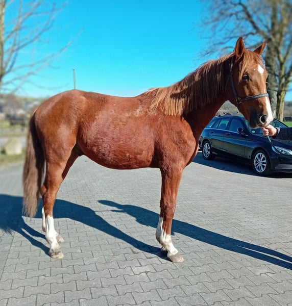 Eleganter Westfale-Hengst, geborene 2024, Dunkelfuchs Vater 174 von Selectric Mutter 164 von Dream on Seine Mutter ist sowohl Dressur als auch Springen gezogen. Er ist kennt alles was man in dem Alter können sollte. Schmied,Wurmkur Anbinden Führen verladen. Alles kein Problem Gut sozialisiert und Menschen bezogen Kann bei Interesse dort stehen bleiben und evtl.auch später angeritten werden Bei Interesse können wir gerne einen Termin zur Besichtigung vereinbaren Besichtigung möglich