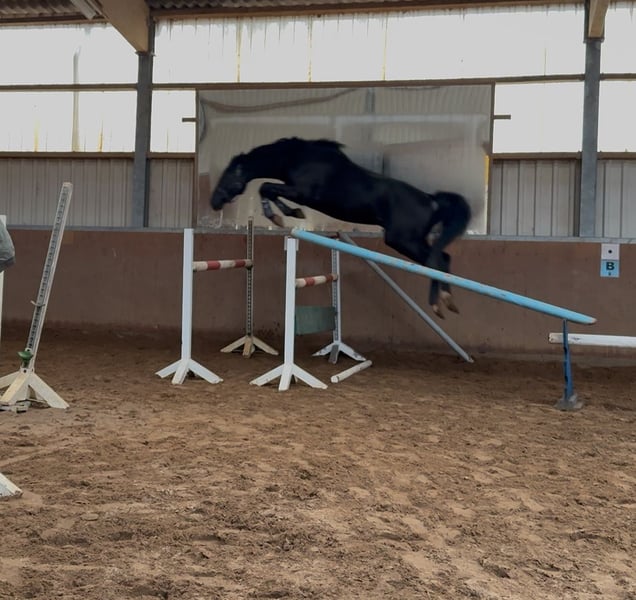Zum Verkauf steht ein vielversprechender qualitätsvoller Hengst in schwarzer Jacke aus hoch erfolgreichem Stamm, geboren 04/22 Er wurde Mitte/Ende Mai 2025 angeritten und hat bereits ein paar Sprünge unterm Sattel gemacht. Im Großen und Ganzen noch nicht weit geritten TUV Vorhanden: Einwandfrei Abstammung: Cornet de Semilly x Classe VDL x Lupicor x Cor de la Bryere Dieser ausgesprochen elegante und typstarke Hengst bringt viel Bewegungsqualität und Vermögen mit bemerkenswertem Sprungablauf mit. Ein Garant und Hoffnungsträger für die große Tour. Mitte/Ende März: Freispringchampionat Die Richter lobten vor allem seine überdurchschnittlichen Bewegungen, seine Ruhe und Gelassenheit, die er mit sich bringt und nicht zu vergessen, sein Vermögen am Sprung. Dies wurde direkt mit einer Wertnote von 8,8 belohnt. Wir können uns sehr gut vorstellen, dass er seinen Platz in der gehobenen Vielseitigkeit findet.