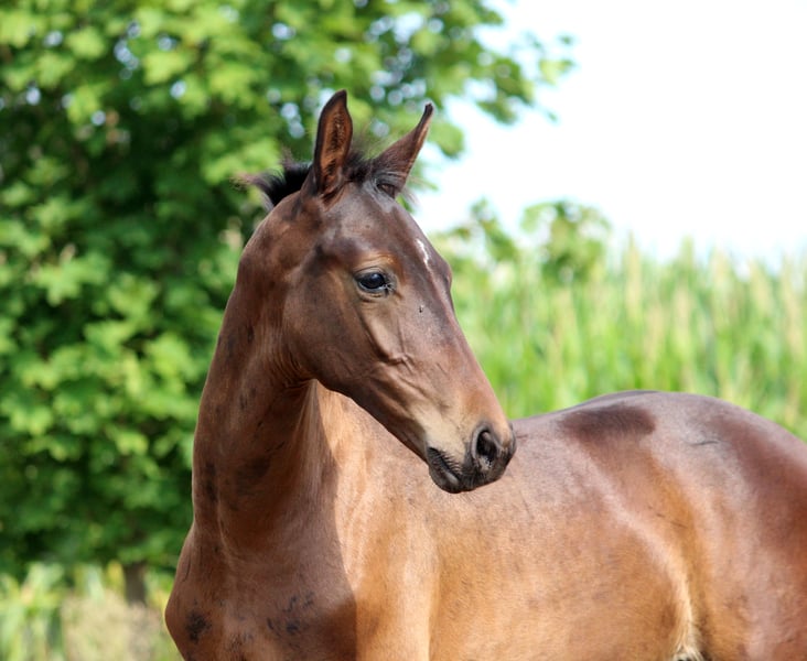 This typey, vigorous colt pleases not only by its three very good, tactful and expressive basic gaits and its extremely correct foundation. The son of the landlord Sir Escolar is also extremely charming, people-oriented, curious and willing to learn. He already masters the complete foal ABC. Father Sir Escolar has three excellent and highly dynamic basic gaits and belonged to the premium lot on the Westphalian licensing. Mother: Finest x Samarant