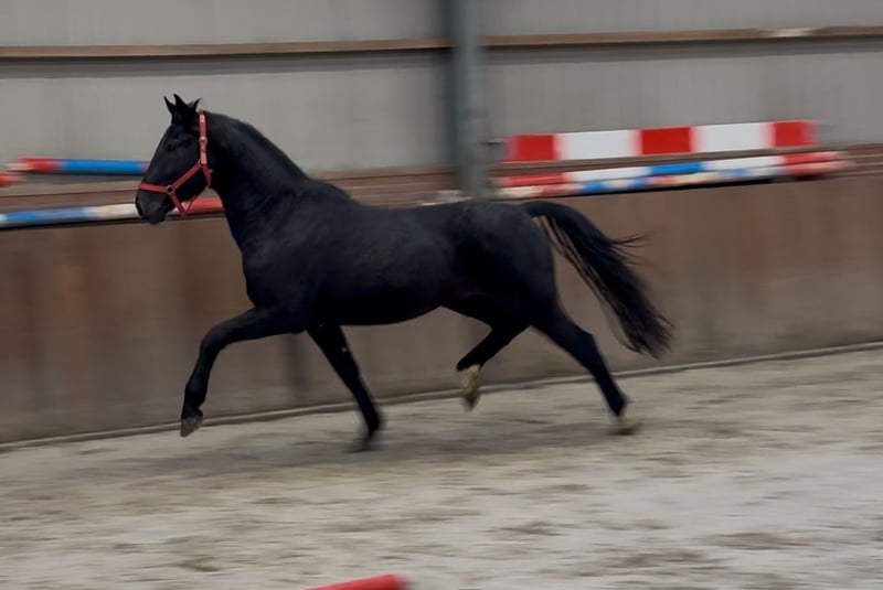 Caballo stallón llamativo y con presencia. Taurus x Freudentänzer. Un caballo con tres movimientos fuertes. Aún es verde y sin entrenamiento. Pero es honesto en la mano. Para más información, por favor llame o envíe un WhatsApp al: +31(0)643197337