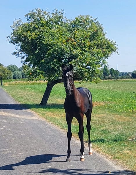 Typ- und bewegunsstrakes Fohlen mit erstklassiger Abstammung! Van Vermeer – aus einer Hohenstein Mutter. Hohenstein-Mütter haben sich aktuell im internationalen Dressursport besonders hervorgetan: So siegte Justin Verboomen bei der Europameisterschaft mit Zonik Plus (aus einer Hohenstein-Mutter), und auch Isabell Werths Spitzenpferd DSP Quantaz geht auf eine Hohenstein-Mutter zurück. Ein Pedigree mit Perspektive für den Top-Dressursport! Video gerne per whats app!