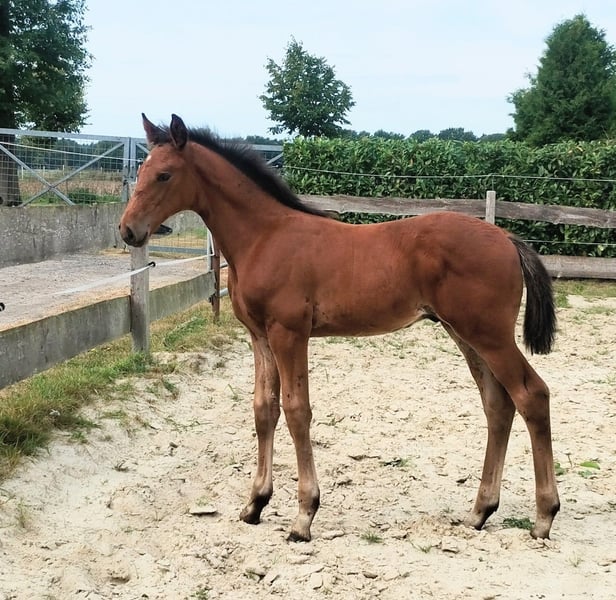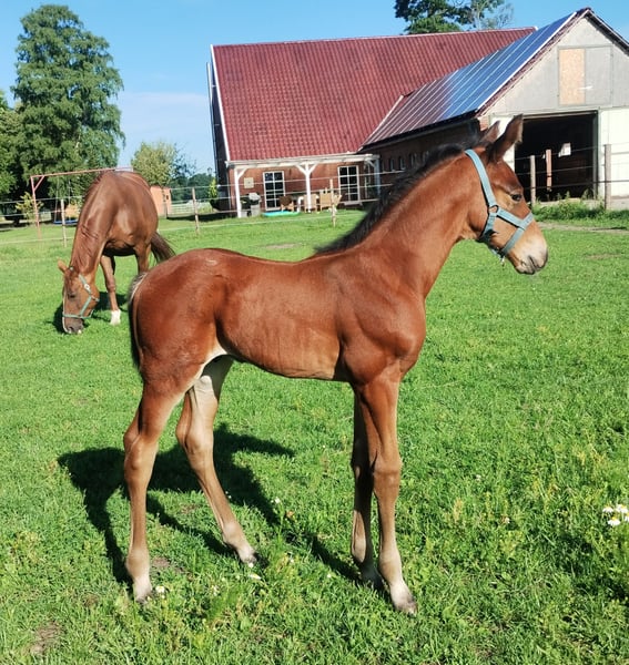 Colt Prospect LICOTUS - ARGENTINUS - LANDADEL - ZEUS AA - FURIOSO xx Genetic rarity ‼️ Excellent foal from a proven, high-performance lineage with double genetic potential. The foal's dam comes from the breeding program of Harli Seifert DLZ Lodbergen. Several premium broodmares in the maternal line (dam St.Pr.St., grandmother is St.Pr.St./Elite Mare). The foal impresses with three very good gaits, a lot of type and presence. Additionally, it features a correct, stable, sufficiently long-legged build. The shoulder and three-part body are ideally proportioned, providing excellent shoulder freedom, uphill canter, and natural balance. Character-wise, it is faultless—calm yet curious, friendly towards humans, not spooky. It is halter-trained and will be presented to the blacksmith every 8 weeks. An old, durable, high-performance line, yet modern and noble in appearance, with a quarter-blood influence, this foal can impress with the desired amount of blood. Its mother already produces an internationally successful 1.45m show jumper. The half-sister of the dam has also produced two 1.45m and one 1.50m successful offspring. Another half-brother is successful at PSG/Inter I level, emphasizing the double genetic potential of the lineage. A further half-brother is successful at 1.30m. Location: 49762 Preferably in caring, supportive hands. Price negotiable; a co-ownership arrangement is also possible.