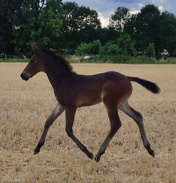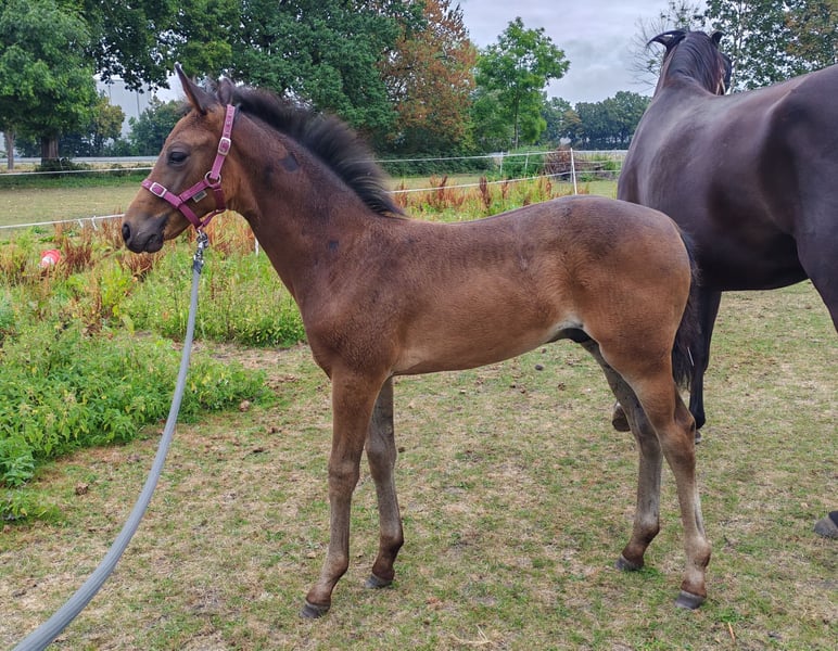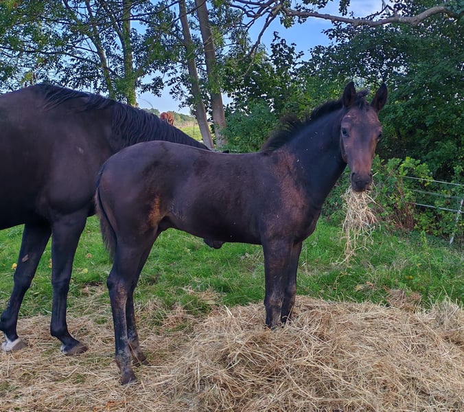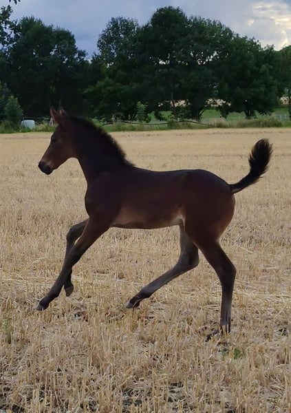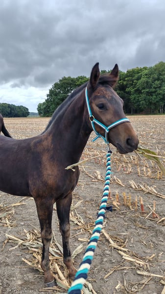 **Verkaufsanzeige: Traumhafter Westfalen Hengst** Wir bieten einen vielversprechenden Westfalen Hengst zum Verkauf. **Merkmale:** - **Rasse:** Westfale - **Geschlecht:** Hengst - **Geburtsjahr:** 2025 - **Farbe:** Dunkelbraun - **Eignung:** Dressur Dieser junge Hengst überzeugt durch sein charmantes Wesen und sein Potenzial im Dressur sowie Springsport. Mit seiner eleganten Bewegung und seiner Lernbereitschaft eignet er sich hervorragend für ambitionierte Reiter, die mit ihm gemeinsam in den Sport einsteigen möchten. Eduardt ist im Umgang unkompliziert. Trotz seines jungen Alters kann er vor der Box angebunden werden und es können die Hufe ohne Probleme ausgekratzt werden. Er ist gegenüber Kindern aufgeschlossen und freut sich über jede Streicheleinheit. Spaziergänge mit seiner Mutter funktionieren mit Halfter und Strick. Alleine kann man ihn eine runde über den Hof führen. Der Vater Eckhardt hat Dressurpferde L gewonnen und ist M* Dressur platziert. Im Springen ist Eckhardt A** platziert. Die Mutter ist in A* Dressur und A* Springen platziert. Außerdem ist die Geländereiter WB platziert. Bei Interesse oder für weitere Informationen stehen wir Ihnen gerne zur Verfügung. Überzeugen Sie sich selbst von diesem tollen Pferd!