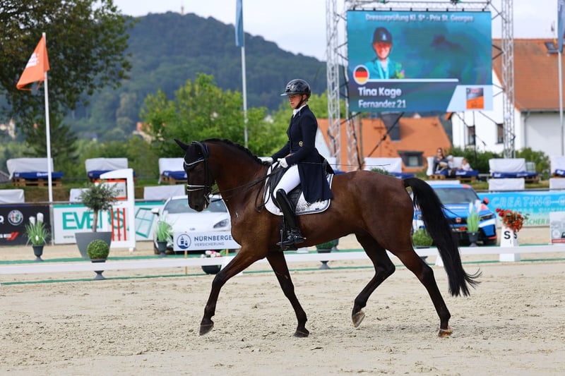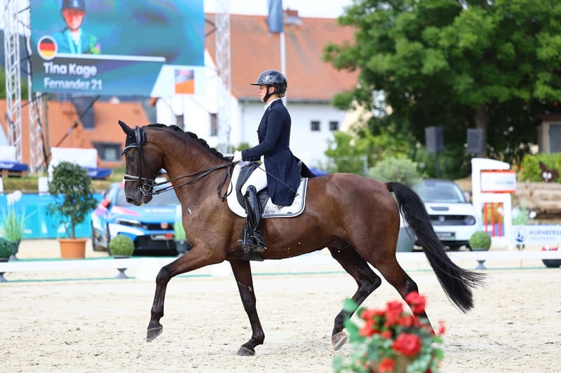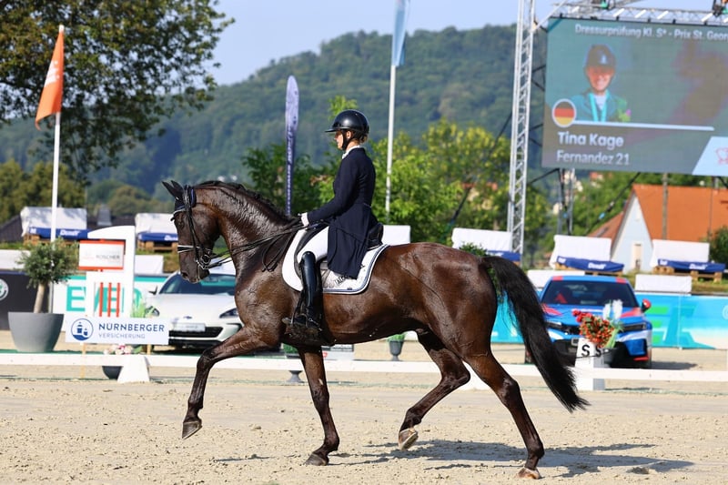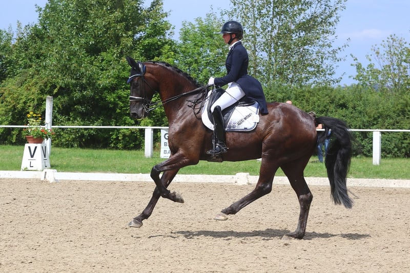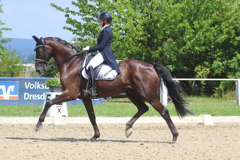 Seit Anfang Juni ist er bei mir im Training und konnte in kurzer Zeit bereits mehrfache Siege und Platzierungen in M- sowie S* und S**-Dressuren sammeln. Er überzeugt im Viereck durch seine schwungvollen, ausdrucksstarken Bewegungen und sein auffälliges Exterieur.