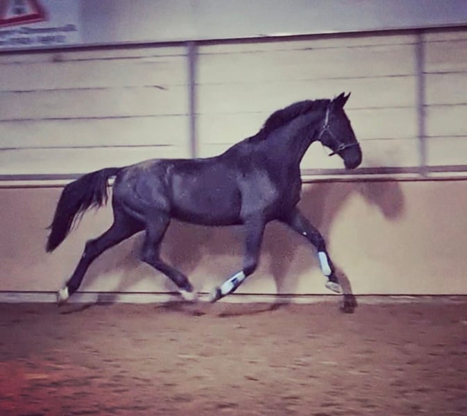 Met pijn in het hart zoek ik voor mijn 14-jarige ruin een nieuw, liefdevol thuis, omdat ik niet meer in staat ben om hem de tijd en aandacht te geven die hij verdient. Hij heeft een stokmaat van ongeveer 1,80 m. Hij is een zeer liefdevol, mensgericht en knuffelbaar paard dat behoefte heeft aan één of twee vaste vertrouwenspersonen. In de dressuur bevindt hij zich op een solide E/A-niveau. Voor afwisseling kent hij cavaletti-, stangen- en longeerwerk, evenals kleine sprongen. Parcourswerk is hem niet vreemd, maar is de laatste maanden niet verder ontwikkeld. In het terrein gedraagt hij zich braaf, zowel alleen als in gezelschap. Hij is echter geen beginnerspaard en niet geschikt voor angstige ruiters, omdat hij in de dressuur verder ontwikkeld wil worden en in onbekende omgeving af en toe kan springen. Hij kent de men- en weidegang ook. Wij wensen voor hem een thuis waar hij zowel gestimuleerd als geliefd en verzorgd wordt – een plek waar hij als familielid wordt gewaardeerd en een mooie, afwisselende taak krijgt. Wij kunnen ons hem heel goed voorstellen in een vrije of actieve stal. Momenteel staat hij in boxen met dagelijks weidegang.