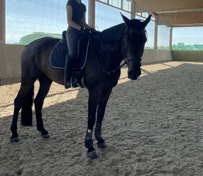 Neues Zuhause für 16-jährigen, sensiblen Wallach gesucht Ich suche für meinen 1,78 m großen Würrtembeger Wallach zeitnah einen neuen Besitzer. Er war bereits seit knapp einem Jahr vermittelt, leider muss die neue Besitzerin ihn aber aufgrund eines Schicksalschlages wieder abgeben. Ich habe ihn 5-jährig direkt vom Züchter gekauft und ihn all die Jahre freizeitmäßig Dressur/ ins Gelände geritten. Meine ehemalige Reitbeteiligung ist ihn regelmäßig gesprungen und hat ihn auf Turnieren vorgestellt. Leider ist das aufgrund einer Knieverletzung in 2024 nicht mehr möglich. Seit dieser Verletzung wurde er ausschließlich vom Boden aus gearbeitet und nicht mehr geritten. Sein Gangbild ist an dem betroffenen Bein nach wie vor verändert und wird wohl auch so bleiben. Er ist aber lahmfrei in allen Gangarten und Tierarzt u. Osteo meinen er könnte nach entsprechendem Muskelaufbau auch wieder geritten werden. In welchem Umfang das dann möglich ist, müsste man sehen. Er geht alleine und in der Gruppe zuverlässig ins Gelände bzw. spazieren. Generell war er immer brav/ anständig beim Reiten und im Umgang, ist aber ein sensibler Typ. Er kann schon mal nervös zu werden, bleibt dabei aber immer händelbar. Als Anfängerpferd sehe ich ihn nicht. Es sollte schon Pferdeerfahrung vorhanden sein. Unter Anleitung trägt er dann aber auch schwächere Reiter durch die Gegend. (Zuletzt wurde er von einem 16-jährigen Mädchen geritten) Er kennt alle Haltungsformen, ganztägig Auslauf/ Offenstall mit nachts Box oder Rückzugsort wäre für ihn ideal. Der Rückzugsort ist wichtig, sonst legt er sich nicht ab. In der Herde ist er verträglich, aber ranghoch. Er ist schmiede- und verladefromm, wurde regelmäßig geimpft, entwurmt und dem Osteopathen sowie Zahnarzt vorgestellt. Eine langjährig bestehende OP Versicherung könnte übernommen werden. Ich wünsche mir für ihn einen langfristigen Platz, vorzugsweise in BaWü/ Süddeutschland. Grundsätzlich möchte ich ihn verkaufen, eine Verfügungsnahme mit voller Kostenübernahme wäre aber auch denkbar. Platz vor Preis. Standort derzeit 77836