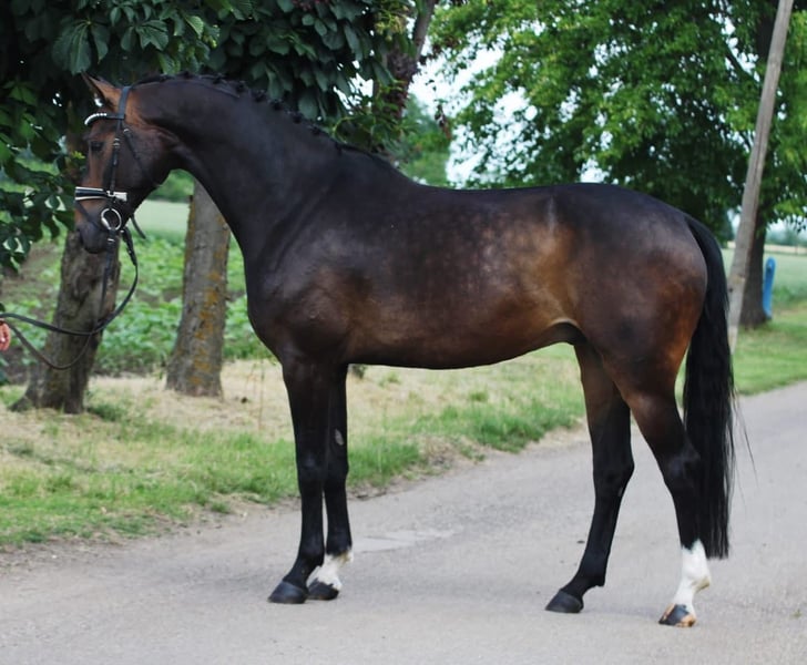 ✨ Außergewöhnlicher Dressurwallach mit Weltklasse-Abstammung ✨ De Niro x Donnerhall x Weltmeyer x Fidermark Dieser elegante 5-jährige Wallach mit einem Stockmaß von 166 cm ist eine echte Rarität auf dem Markt – nicht nur wegen seines Exterieurs und seiner hervorragenden Bewegungen, sondern vor allem wegen seiner erstklassigen Abstammung. Seine Abstammung vereint das Beste der Dressurwelt: De Niro, Donnerhall, Weltmeyer und Fidermark – vier Namen, die für höchste Qualität im Dressursport stehen. Beide Elternteile waren erfolgreiche Dressurpferde auf internationalem Niveau und geben ihre Gene an diesen vielversprechenden Wallach weiter. Ausbildungsstand über dem Alter: Er hat das Dressurpferde L-Niveau bereits souverän gemeistert und wird aktuell auf die Klasse M vorbereitet. Er überzeugt durch Balance, Durchlässigkeit und Taktreinheit – bereit für die nächsten Schritte im Turniersport. Bewegung mit Ausdruck und Qualität: Er zeigt einen raumgreifenden, bergauf gesprungenen Galopp, einen taktsicheren, schwungvollen Trab und einen regulären, fleißigen Schritt. Traumhafter Charakter: Freundlich, ehrlich und ausgeglichen – ein ideales Pferd für ambitionierte Amateure, Umsteiger vom Pony oder talentierte Nachwuchsreiter. Zuverlässig im Alltag: Er kennt das Freispringen, liebt Ausritte ins Gelände, arbeitet regelmäßig an der Führmaschine und ist brav beim Schmied und Verladen. Weitere Informationen und Videos gerne privat oder per Weltweiter Transport möglich – mit einem zuverlässigen Transportunternehmen kann die Lieferung in jedes Land organisiert werden. +4917640177894