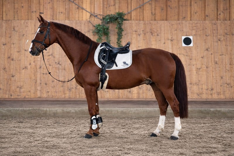 Dieser 5-jährige Dunkelfuchs-Wallach mit 173 cm Stockmaß überzeugt durch Typ, Größe und Präsenz. Ein modernes Sportpferd mit Ausdruck und klarer Leistungsabstammung. Abstammung: Vitalis – Vivaldi – D-Day – Argus. Blutführung, die für Elastizität, Kraft aus der Hinterhand und sportliche Perspektive steht. Er zeigt drei ansprechende Grundgangarten mit guter Mechanik und natürlicher Bergauf-Tendenz. Besonders seine aktive Hinterhand und die Schulterfreiheit lassen erkennen, welches Potenzial in ihm steckt. Er befindet sich altersgerecht in Ausbildung und zeigt sich dabei stets kooperativ und brav im täglichen Umgang. Ein Pferd, das mit Ruhe und konsequenter Förderung weiter wachsen kann. Kein „fertiges Produkt“, sondern ein talentierter 5-Jähriger mit Format, Substanz und Entwicklungsspielraum. Wer Qualität für die Zukunft sucht und Freude daran hat, ein Pferd weiter aufzubauen, sollte ihn sich unbedingt persönlich anschauen. Potenzial muss man fühlen – nicht nur lesen.