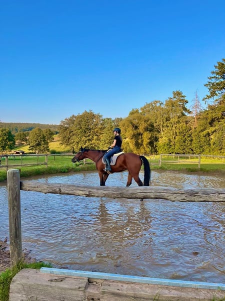 Württemberger Stute – liebe Freizeitpartnerin Zum Verkauf steht eine braune Württemberger Stute, geboren am 27.05.2010. Abstammung: Vater: Leviathan Mutter: Lorelei Die Stute ist eine sehr liebe, menschenbezogene Dame mit schönem Vorwärtsgang. Sie benötigt eine ruhige Hand und einen sicheren Sitz – dann ist sie für vieles zu begeistern. Besonders Sprünge und ausgedehnte Geländeritte machen ihr große Freude. Bei uns wurde sie bis E-Dressur und E-Springen geritten. Turnierambitionen hat sie jedoch keine mehr, da ihr der Turniersport keinen Spaß bereitet. Sie eignet sich daher ideal als zuverlässige Freizeitpartnerin, mit der man noch viel erleben kann. Wir wünschen uns für sie ein Für-immer-Zuhause mit viel Weidegang und/oder Paddockbox, wo sie weiter gefördert und geschätzt wird. Leider müssen wir sie aus zeitlichen Gründen abgeben. Platz vor Preis – ein liebevolles Zuhause ist uns am wichtigsten.