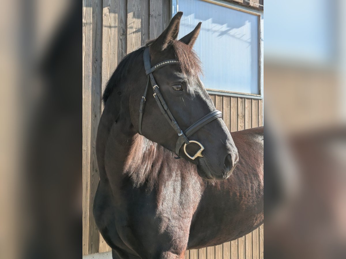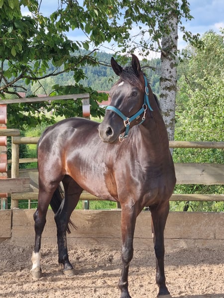 Schweren Herzens suche ich für meine Stute „Fee“ (geb. 2019) einen neuen Besitzer. Sie ist eine württembergisch gezogene 7- jährige Rappstute von „Fair Game“. „Fee“ ist eine typvolle, rittige Stute mit drei überdurchschnittlichen, ausbalancierten Grundgangarten und hohem Sitzkomfort. Sie ist, seit sie 3- jährig ist, bei mir und wurde in den folgenden Jahren freizeitmäßig geritten. Es stellte sich im Laufe der Zeit aber heraus, dass sie damit schlicht unterfordert ist. Seit Ende letzten Jahres wird sie intensiver im Bereich Dressur gefördert und zeigt hier ihr Talent für „mehr“. Auch auf Grund ihrer guten Einstellung erlernt sie spielerisch leicht neue Lektionen, wie z. B. Seitengänge oder den Kontergalopp. Gesucht wird hier ein ambitionierter Reiter, der „Fee“ weiter fördern möchte. Wegen ihres Temperaments und ihres Selbstbewusstseins ist sie für Anfänger nicht geeignet, auf Turnieren wurde „Fee“ noch nicht vorgestellt. Es handelt sich hier nicht um einen Notverkauf, „Fee“ ist nur in gute Hände abzugeben. Langfristig wäre sicher auch eine Verwendung in der Zucht interessant.