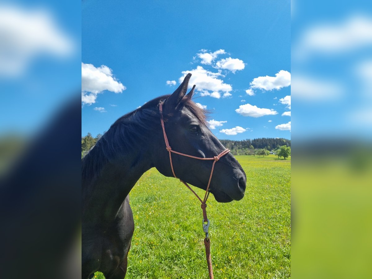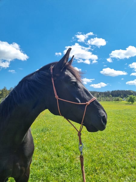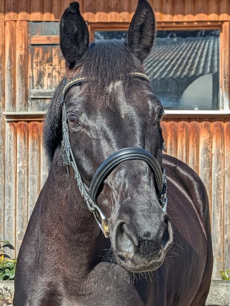 Schweren Herzens suche ich für meine Stute „Fee“ (geb. 2019) einen neuen Besitzer. Sie ist eine württembergisch gezogene 7- jährige Rappstute von „Fair Game“. „Fee“ ist eine typvolle, rittige Stute mit drei überdurchschnittlichen, ausbalancierten Grundgangarten und hohem Sitzkomfort. Sie ist, seit sie 3- jährig ist, bei mir und wurde in den folgenden Jahren freizeitmäßig geritten. Es stellte sich im Laufe der Zeit aber heraus, dass sie damit schlicht unterfordert ist. Seit Ende letzten Jahres wird sie intensiver im Bereich Dressur gefördert und zeigt hier ihr Talent für „mehr“. Auch auf Grund ihrer guten Einstellung erlernt sie spielerisch leicht neue Lektionen, wie z. B. Seitengänge oder den Kontergalopp. Gesucht wird hier ein ambitionierter Reiter, der „Fee“ weiter fördern möchte. Wegen ihres Temperaments und ihres Selbstbewusstseins ist sie für Anfänger nicht geeignet, auf Turnieren wurde „Fee“ noch nicht vorgestellt. Es handelt sich hier nicht um einen Notverkauf, „Fee“ ist nur in gute Hände abzugeben. Langfristig wäre sicher auch eine Verwendung in der Zucht interessant. Videos gerne auf Anfrage! Platz vor Preis!