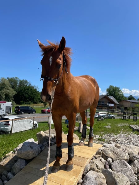 2011 geboren und ca. 171cm gross besticht er durch seinen aufgestellten Charakter. - geht alleine oder in der Gruppe ins Gelände. Läuft auch in unbekanntem Gelände vorne. - hat einen angenehmen Vorwärtsdrang - barhuf und Herdenhaltung gewohnt - Regelmässige Hufbearbeitung, Zahnkontrolle und Osteopathie - wird regelmässig auch am Boden gearbeitet (Tricks, Doppellonge, Longieren, Freiarbeit, Extrem Trail) - Kann an der Longe und geführt von Reiteinsteigern geritten werden. Ist jedoch aufgrund seines Temperaments nicht für Anfänger geeignet. Der Wallach hat ein leichtes Handicap (PSSM II), was sich in einem Hahnentritt hinten zeigt. Dieser ist tierärztlich abgeklärt und schränkt ihn im Alltag nicht ein. Platz vor Preis