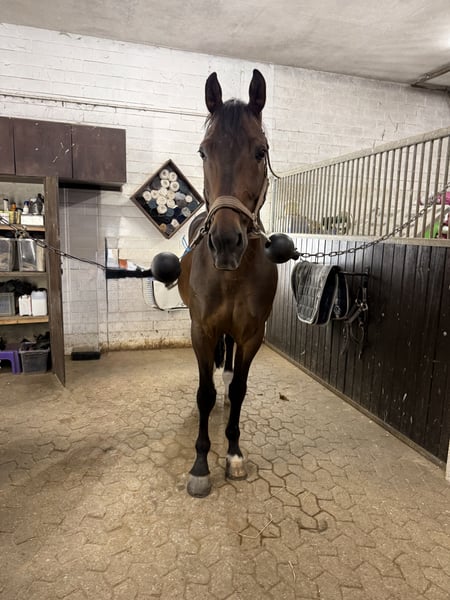 Zum Verkauf steht unser Wallach Asterix vant Winkenshof Z (Zangersheide, 10.04.2010, braun). Asterix wird aktuell im Vollberitt professionell geritten und ist in guter Arbeit. Er ist ein sehr liebes, ehrliches Pferd im Umgang und macht täglich Freude. Im Sattel gilt: Er ist brav und macht super mit, trotzdem braucht er einen Reiter, der wirklich reiten kann und sich durchsetzen kann. Dann zeigt er sich motiviert und leistungsbereit. Besonders hervorzuheben: sehr lieb im Umgang brav und zuverlässig beim Ausreiten steht aktuell im professionellen Training toller Partner für einen ambitionierten Reiter Für Asterix wünschen wir uns ein liebevolles Zuhause für immer, in dem er weiter gefördert wird und seinen Menschen glücklich machen darf. Bei Interesse freuen wir uns über Nachrichten für weitere Infos und Kennenlernen.