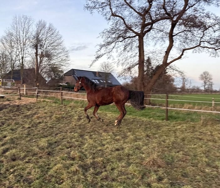 Alter: 3 Jahre Größe: aktuell ca. 158 cm Geschlecht: Wallach Haltung: Offenstall in gemischter Herde Eingetragener Zangersheider Abstammung: Quintos de Trebox (Quickly de Kreisker x Carthago Z) x Neos van‘t Vossenhof Z x Liberator Ausbildung: altersentsprechend gefördert, bisher nicht angeritten Seit er abgesetzt ist, bei uns! ⸻ ⭐ Beschreibung Dieser vielversprechende junge Wallach bringt alles mit, was man sich für die Zukunft wünscht: eine tolle Springabstammung, ein klarer Kopf und eine sehr solide Grundausbildung. Er wächst im Offenstall in einer gemischten Herde auf – bestens sozialisiert, robust und ausgeglichen auf Grund seiner Herkunft aus der Thüringeti. Er zeigt bereits jetzt eine gute Körperkontrolle, viel Ballance und eine angenehme Mitarbeit. Für eine weitere Förderung im Sport oder ambitionierten Freizeitbereich ist er absolut geeignet. Wer Qualität sucht, ist hier genau richtig. ⸻ Besondere Merkmale • korrekt gebaut • freundlich, neugierig, klar im Kopf • gute Grundgangarten • super Entwicklungspotenzial fürs Springen • sozialverträglich und unkompliziert im Umgang