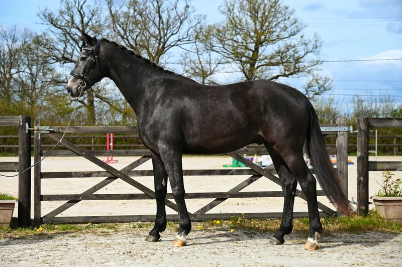 Greynight de Ponflot Z ist ein Zangersheide-Wallach aus dem Jahr 2023, derzeit etwa 1,63 m groß, mit einem modernen, harmonischen und gut proportionierten Körperbau. Er stammt vom sehr gefragten Glamourdale ab, verbunden mit bewährten Linien (Wolkenstein x Gribaldi). Sein Pedigree ist anerkannt für seine Qualität in den Bewegungen, sein Gleichgewicht und seine Lernfähigkeit, was ihn besonders für den Dressursport geeignet macht. Mit einem willensstarken und ausgeglichenen Gemüt zeigt Greynight eine ernsthafte Arbeitsweise, bleibt dabei aber zugänglich. Nach der Vor-Ausbildung wurde er vorsichtig im Offenstall gehalten und anschließend wieder eingeritten. Er wurde sorgsam im Umgang geprägt und verfügt heute über solide Grundlagen: Longieren, Longenarbeit und Schritt mit dem Reiter. Sein ruhiges Verhalten und seine Bereitschaft ermöglichen eine gute Wiedereingliederung in den Trainingsalltag, insbesondere für einen ambitionierten Amateur unter Anleitung. Da er noch jung und im Aufbau ist, zeigt er eine natürliche, ausgeglichene Bewegungsführung und eine gute Grundhaltung, was auf ein vielversprechendes Potenzial für eine Weiterentwicklung im Dressur- oder Vielseitigkeitssport hindeutet. Greynight stellt eine attraktive Gelegenheit für einen Reiter dar, der ein junges Pferd nach seinen Vorstellungen aufbauen möchte, mit einer soliden Basis und Entwicklungspotenzial. Temperament & Alltag Sehr angenehm im Umgang, besticht er durch seine Einfachheit: Pflegeleicht Aktuell im Offenstall, kennt den Stall Einfache Handhabung und zuverlässiges Verhalten Ein praktisches, ausgeglichenes Jungpferd, ideal für eine ruhige Weiterentwicklung. Für welches Projekt? Greynight eignet sich besonders für: Einen engagierten Amateur, der ein qualitativ hochwertiges Jungpferd aufbauen möchte Einen Reiter, der ein gut gezogenes, zugängliches Pferd sucht Ein Freizeit- und Entwicklungsprojekt mit Schwerpunkt auf Dressur Einen Reiter, der in ein junges Pferd mit Potenzial investieren möchte Seine Stärken Gefragtes Dressurpedigree (Glamourdale x Wolkenstein x Gribaldi) Modernes, harmonisches Modell Gutes, willensstarkes und ausgeglichenes Wesen Bereits erworbene Grundarbeit (Longieren, Longen, Schritt mit dem Reiter) Vollständige Röntgenbilder verfügbar, mit Befund (Gliedmaßen, Rücken, Hals – März 2026) Einfach im Umgang und in der Handhabung Attraktiver Preis, der der tierärztlichen Untersuchung entspricht Pferdedaten Gesundheit & Pflege Impfungen, Wurmkuren, Hufpflege aktuell Tierärztliche Informationen: Vollständige Röntgenbilder mit Befund (Gliedmaßen, Rücken, Hals – März 2026) Charakter & Fähigkeiten Disziplin(en): Dressur / Freizeit