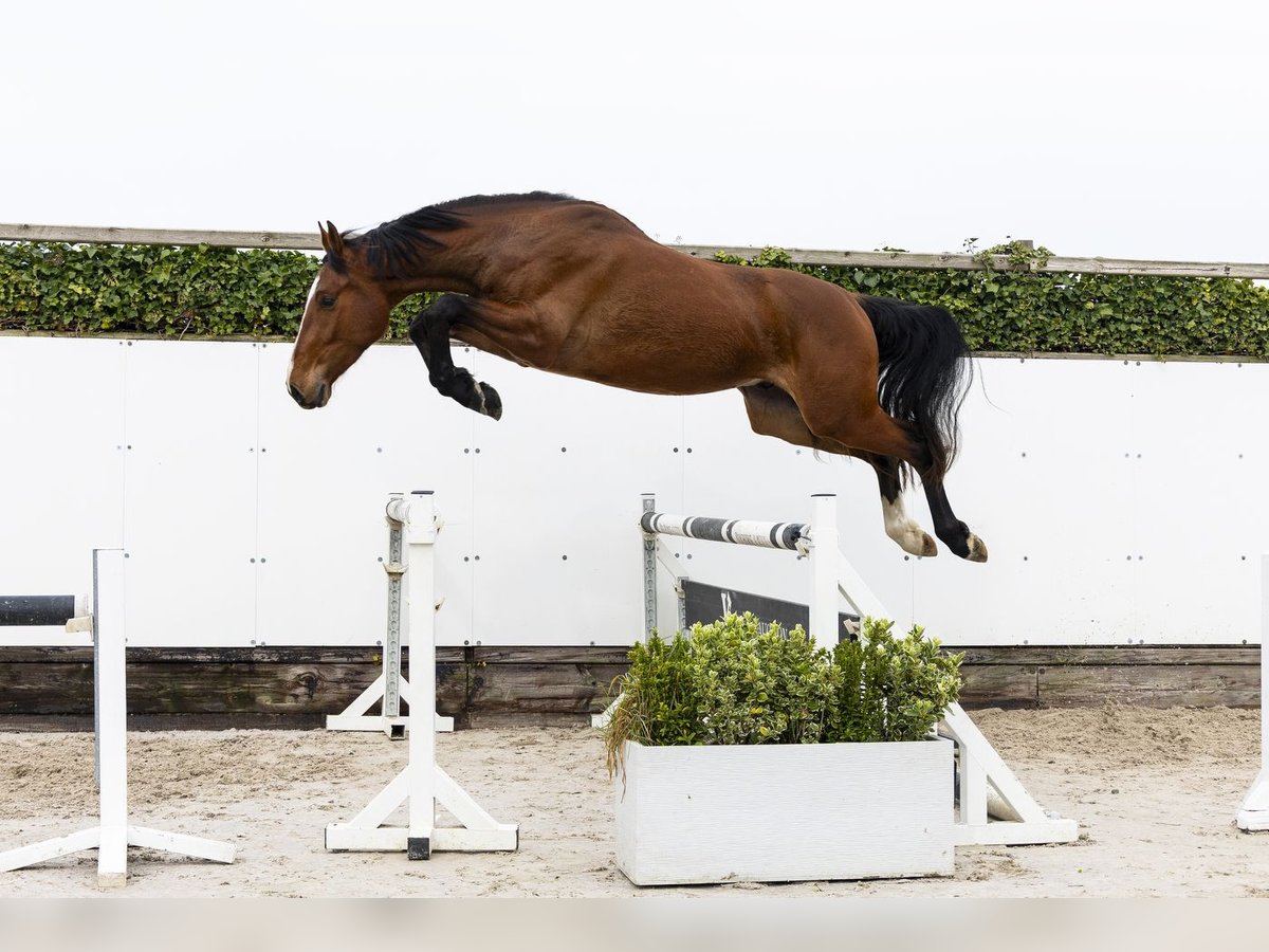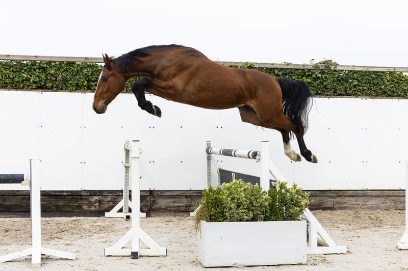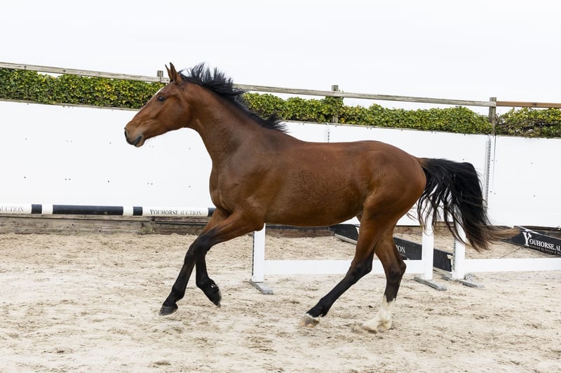 Long-lined horse with a lot of scope that seems easy to develop. Shows to be very careful on the jump and has a big canter. Smart on the jump and thinks along well. We see him as a real sport horse for the future. Sire NIXON VAN ’T MEULENHOF – 1.60m Proven stallion at top level with scope, reflexes and a modern attitude. Dam IEKE – 1.35m Damline / family Granddam: NIMF Further in the line: UNITED III – 1.60m WISH – 1.60m ALOU – 1.45m ZAMMY – 1.40m TINKLEBELL – 1.35m WARWICK – 1.35m Approved stallions in the line: NIXON VAN ’T MEULENHOF, AREZZO VDL, CONCORDE, CHIN CHIN, CARTHAGO