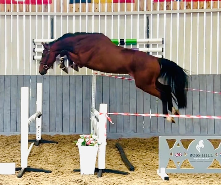 Hot Rod Waldstar Z ist ein wunderschöner Wallach mit beeindruckenden Blutlinien. Er ist ein Sohn von Hardrock Z, der erfolgreich bis 1,60 m gesprungen ist und an den Olympischen Spielen sowie den Weltreiterspielen teilgenommen hat. Die Mutter, Pourquoi Pas van ’t Meulenhof (Gemini CL xx), ist die volle Schwester des 1,55 m Grand Prix-Pferdes Private Dancer van ’t Meulenhof, geritten von Giavanna Rinaldi (USA) und Piergiorgio Bucci (ITA). Die Großmutter Darcotique v ’t Meulenhof (Marius Claudius) sprang 1,50 m Parcours mit Marjan De Wachter (BEL) und geht über Narcotique de Muze IV (1,50 m) zurück auf die Weltcup-Stute Qerly Chin (1,60 m). Darcotique brachte sieben internationale Springpferde hervor, darunter Makelele van ’t Meulenhof (1,45 m mit Perrine Bignon, FRA). Sie ist auch eine Halbschwester der gekörten Hengste Jenson van ’t Meulenhof (1,70 m GP), Iron Man van ’t Meulenhof (1,40 m) und Denzel van ’t Meulenhof (1,30 m). Hot Rod ähnelt stark seinem Vater: dynamisch, kraftvoll, mit Vermögen und Energie. Er ist jetzt seit etwa 6 Wochen unter dem Sattel, leicht in der Hand und hat gerade begonnen, unter dem Reiter zu springen. Er hat einen super ausbalancierten Galopp mit echter Kraft und einem großen Schritt und zeigt sich außergewöhnlich mutig und vorsichtig. Dieses Pferd hat alles in sich, um eine große Zukunft im Sport zu haben.