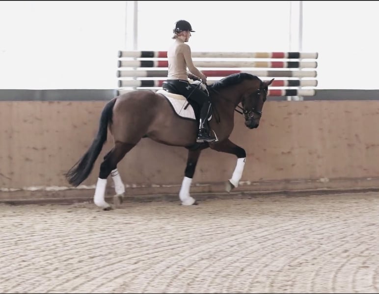 Franky is a 4-year-old gelding, shown in the video riding under saddle for approximately three weeks. He is exceptionally well-behaved, eager to learn, and demonstrates a natural rhythm and impulsion. He is easy to handle, clear-minded, and a pleasure to ride – a horse that truly makes riding enjoyable. Character 10/10. X-rays available, including the back, with no findings.