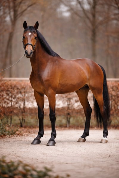 CORYDEAU T&L Z Zum Verkauf steht ein moderner, großrahmiger 4-jähriger Wallach aus dem renommierten belgischen Zuchtstall Tilleman & Lenaerts (T&L). Corydeau ist roh und kommt direkt von der Weide. Aktuell wird er altersgerecht anlongiert und behutsam angeritten. Dabei zeigt er sich stets brav, lernwillig und sehr kooperativ. Im täglichen Umgang ist er sehr unkompliziert, menschenbezogen und bemüht, alles richtig zu machen. Durch seine elastische, ausbalancierte Bewegung sowie seine natürliche Athletik ist er doppelt veranlagt und sowohl für die weitere Ausbildung im Spring- als auch im Dressurbereich interessant. Abstammung: Vaterlinie: Corydon van T&L Z – aus Cornet Obolensky, einem der einflussreichsten Springvererber der Welt, selbst international erfolgreich und Vater zahlreicher Spitzenpferde bis 5*-Niveau. In der Vaterlinie finden sich außerdem absolute Ausnahmevererber wie Clinton und Chacco-Blue, die den modernen Springsport prägen. Mutterlinie: Über Deauville de la Vie und Arnica Z überzeugt die Mutterseite mit einer soliden, sportlich bewährten Basis, die Rittigkeit, Rahmen und Leistungsbereitschaft ergänzt