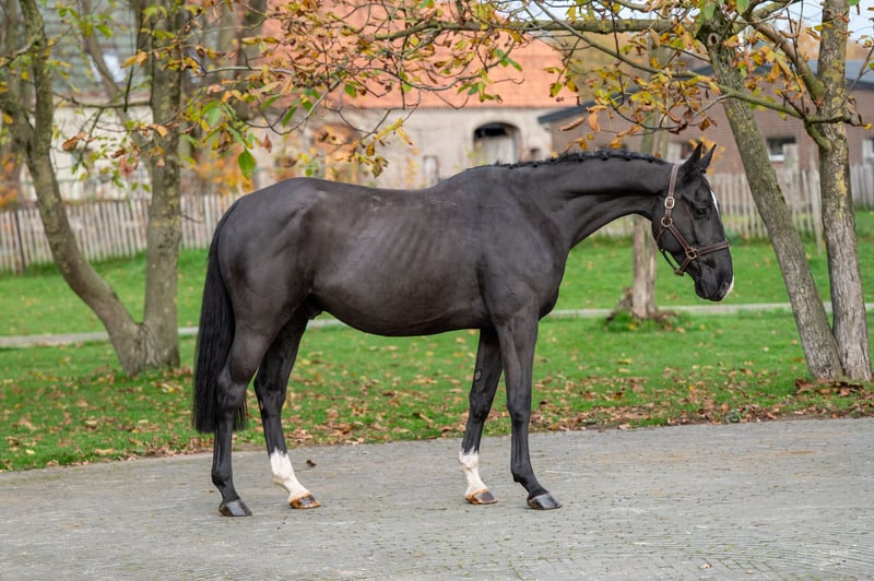 https://esha.horse/Auctions/Item/5611 Connor (v. Casall) tekent voor het vaderschap van dit jonge talent. Aan moederszijde zien we BWP ambassadeurs Non Stop en Jus de Pomme die zich laten kenmerken met rijdbaarheid en vermogen. Cyrano laat deze kenmerken ook zeker zien. Ondanks dat hij nog maar amper 2 maanden geleden op stal is gekomen om zadelmak te maken toont hij een goede instelling en een vriendelijk karakter. Kortom een paard met een fijne instelling en een goede techniek op de hindernis die klaar is om met u aan de slag te gaan. Connor (by Casall) is the sire of this young talent. On the dam's side, we see BWP ambassadors Non Stop and Jus de Pomme, who are characterized by their rideability and ability. Cyrano certainly displays these characteristics as well. Although he only arrived at the stable two months ago to be broken in, he shows a good attitude and a friendly character. In short, a horse with a good attitude and good technique over the fence, ready to get to work with you. Connor (par Casall) est le père de ce jeune talent. Du côté maternel, on retrouve les ambassadeurs BWP Non Stop et Jus de Pomme, qui se caractérisent par leur maniabilité et leur puissance. Cyrano présente également ces caractéristiques. Bien qu'il soit arrivé à l'écurie il y a à peine deux mois pour être débourré, il fait preuve d'une bonne attitude et d'un caractère amical. En bref, c'est un cheval avec une bonne attitude et une bonne technique à l'obstacle, prêt à travailler avec vous. Connor (v. Casall) ist der Vater dieses jungen Talents. Auf der mütterlichen Seite finden wir die BWP-Botschafter Non Stop und Jus de Pomme, die sich durch Rittigkeit und Leistungsfähigkeit auszeichnen. Cyrano zeigt diese Eigenschaften ebenfalls. Obwohl er erst vor knapp zwei Monaten in den Stall gekommen ist, um sich an den Sattel zu gewöhnen, zeigt er eine gute Einstellung und einen freundlichen Charakter. Kurz gesagt: ein Pferd mit einer guten Einstellung und einer guten Technik am Hindernis, das bereit ist, mit Ihnen zu arbeiten.