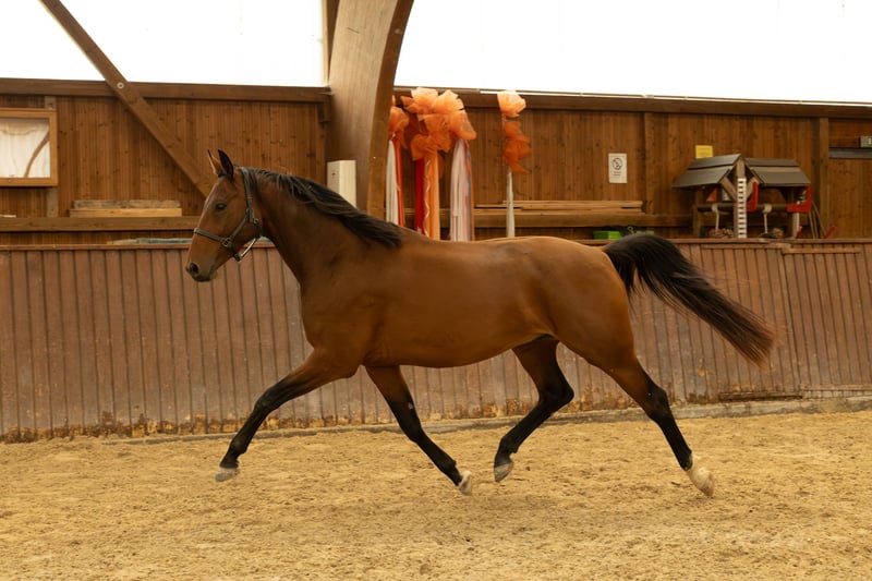 **Pedigree** Zangersheider gelding by Flint (Fürsten-Look x San Amour) out of a mother by Ehrenwort / Ehrentusch x Florestan I. **Key Data** Born on April 24, 2020, current height: 170 cm. **Profile** Sporty dressage-oriented, compact gelding in the modern riding horse type. Clever, sensitive, cheerful, and ready for adventure. **Health** Fred is healthy, has been regularly dewormed, vaccinated, and presented to the farrier. Wolf teeth were removed during castration. He had sarcoids in the past, which were treated and have not reoccurred to date. **Training Level** Fred has been intensively worked with on the ground and lunged. He has already gained initial experience under saddle and appears ready for backing at four years old. Fred is enthusiastic about loading into a trailer, is good as a lead horse, and behaves well with the farrier and veterinarian. **Background** Fred was born in the Thüringeti and came to us as a weanling. In the Thüringeti, he experienced life in a large herd with minimal human interference. This upbringing has made him well-socialized and brings robustness and a certain toughness. He continues to enjoy life in the herd year-round with us. On our large mountain pastures, he plays and gallops a lot. Our horses are sure-footed and know their own bodies well. We establish contact with humans gently, waiting for the horses to seek contact themselves, which creates deep trust in people. Fred was the first foal from his year to greet me with a whinny. These are moments you never forget. **Portrait** Fred loves people. He is intelligent, motivated, and sometimes a bit cheeky, yet remains manageable and affectionate. A horse full of spirit, suited for experienced, nurturing hands. Those who approach him with calmness and kindness will experience an alert mind as well as a loving and loyal friend. **Fred's Ideal Partner** For Fred, we wish for a calm but sporty rider who will further develop him on his journey. This effort will definitely pay off. **Price** Negotiable upon request.
