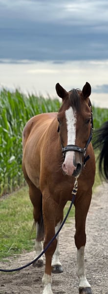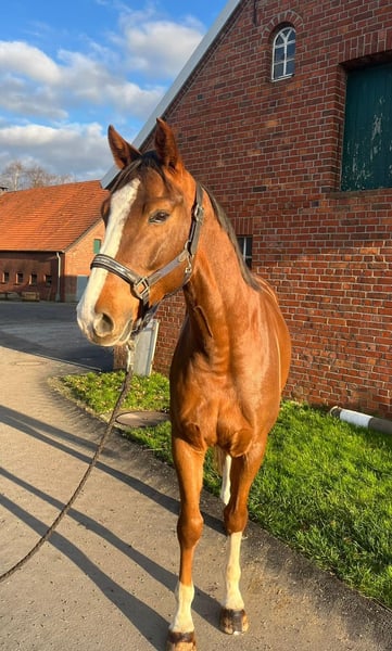 **Sales Advertisement: Zangersheider Gelding** For sale is a beautiful Zangersheider gelding, born in 2019. With his striking chestnut coat and a height of 158 cm, he is a real eye-catcher. The gelding is excellently suited for leisure activities. He is well-behaved in handling and shows a strong willingness to learn when ridden. Due to his size, he is a great horse for transitioning riders, but he is not suitable for beginners. He is ideal for riders looking for a reliable horse for relaxed trail rides or cozy training sessions. He is trained to A-level in dressage and also jumps well; however, he has not been further developed in jumping as he is quite strong in the course. He definitely has potential for more, but unfortunately, I lack the time. He can go out alone in the field, but can also stay in the paddock or box. He is familiar with many everyday stimuli and is quite calm. If you are interested or have further questions, I am happy to assist. Viewings are possible by appointment. Don’t miss this opportunity!