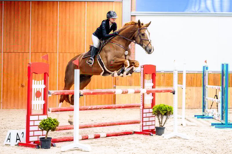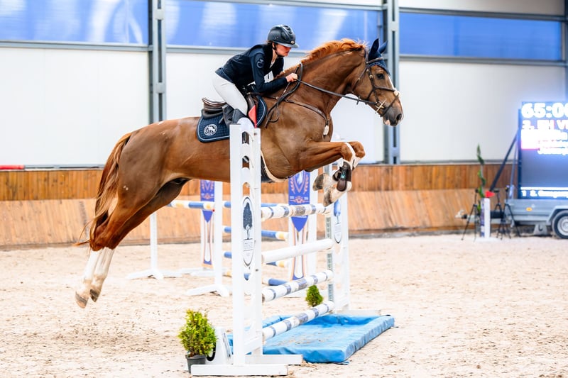Pferd mit außergewöhnlichen Springfähigkeiten, seit weniger als einem Jahr unter dem Sattel, startet bereits erfolgreich in Springprüfungen bis 120 cm. Es ist leicht zu handeln und zeigt sich im Reitunterricht problemlos. Der Vater sprang bis 160 cm, die Mutter bis 140 cm.