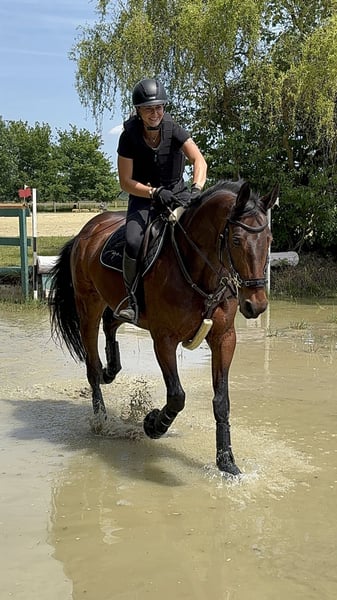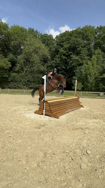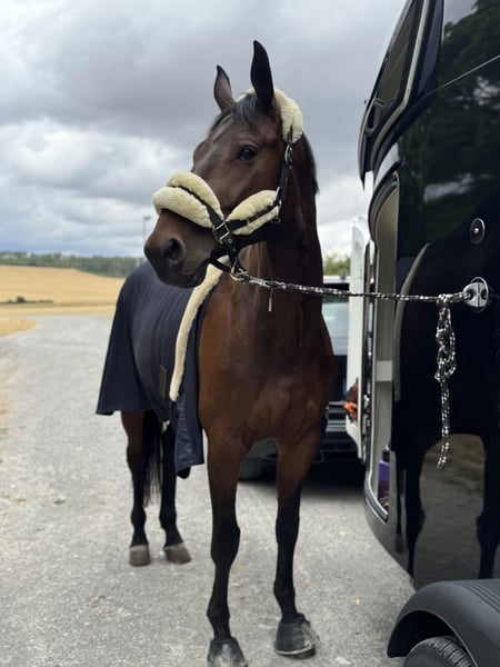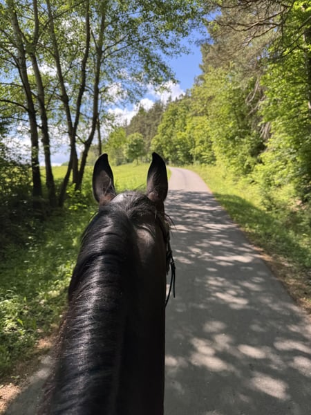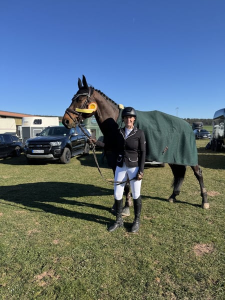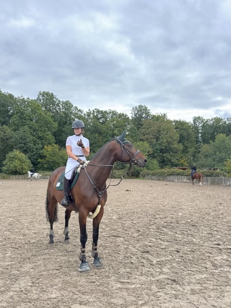 I am selling my gelding - affectionately called Carlo - due to my studies. He is a sensitive gelding who wants to work, needs security, and wants to perform... and that is exactly my problem, as I find too little time for him and he simply needs to be kept busy! This year, I have ridden many training sessions with him - dressage / jumping / cross-country. Weekly lessons and also external sessions. We have also participated in a few competitions, unfortunately, my personal confidence is lacking and I simply do not have the time to present him more. He is well-behaved in handling and loves children. He is good with the farrier - currently shod 4 times. He loads safely into the trailer and stands quietly alone at competitions. He goes out alone and in a group for trail rides. He is herd-compatible. He brings a lot of quality and is a horse for someone who has the time for a horse with a future. He is currently in full training and is in top physical condition. Absolutely place before price.