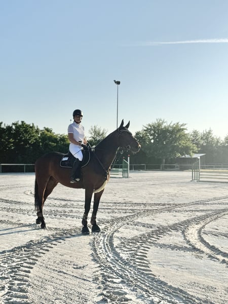 Ich verkaufe aufgrund meines Studiums meinen Wallach - liebevoll genannt Carlo. Er ist ein sensibler Wallach, der gerne arbeiten möchte, Sicherheit braucht und Leistung bringen möchte.....und genau das ist mein Problem, da ich zu wenig Zeit für ihn finde und er einfach beschäftig werden soll! Ich bin in diesem Jahr sehr viele Trainingseinheiten mit ihm geritten - Dressur / Springen / Gelände. Wöchentlich im Unterricht und auch auswärtige Einheiten. Ein paar Turniere haben wir auch bestritten, leider fehlt hier meine persönliche Sicherheit und einfach die Zeit um ihn mehr vorzustellen. Er ist im Umgang artig und kinderlieb. Er ist artig beim Schmied - aktuell 4 x beschlagen. Er geht sicher in den Hänger und steht auch am Turnier alleine brav. Er geht alleine und in der Gruppe ins Gelände. Ist Herden verträglich. Er bringt viel Qualität mit und ist für jemanden, der die Zeit hat ein Pferd mit Zukunft. Aktuell steht er voll im Training und ist konditionell top in Form. Absolut Platz vor Preis.