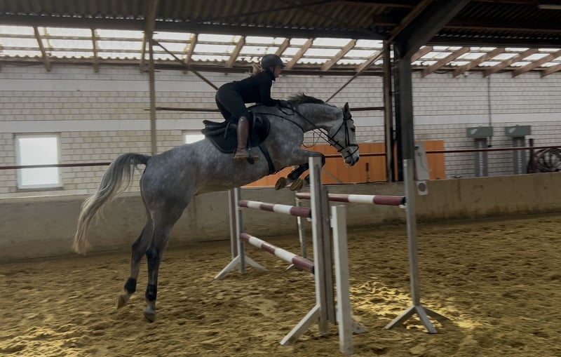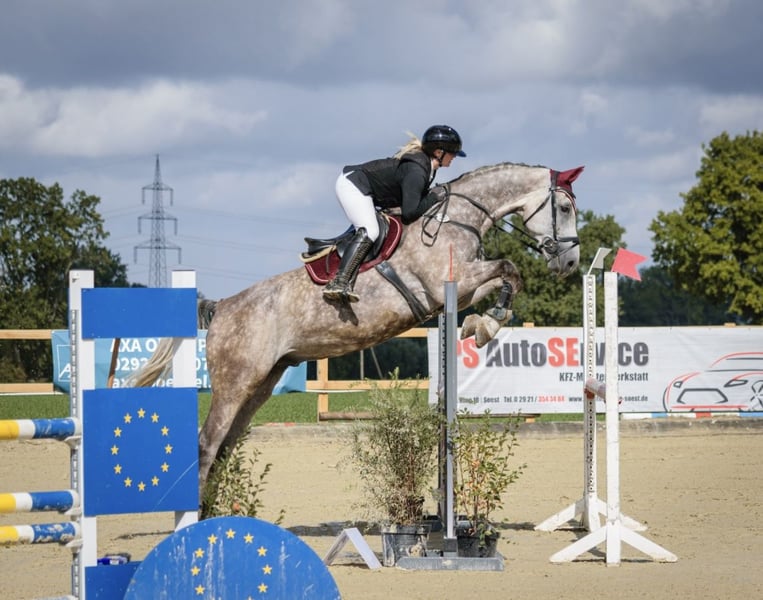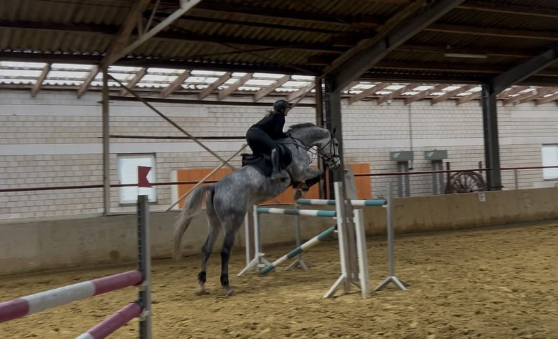 For sale is a 6-year-old Zangersheide gelding, distinguished by his quality and appearance. The 1.75 m tall, elegant chestnut (apple) grey impresses with his very friendly and balanced temperament. His main focus is show jumping, where he demonstrates his talent. The gelding is well-trained and shows great potential for high-level competition. He is very reliable over fences, jumps from all situations, and does not spook. This year, he competed in his first show season, achieving multiple placings in class A and even winning some. He also placed directly in his first L-level jumping competition with a score of 7.8. If you are interested or require further information, please feel free to contact me. Videos can also be sent upon request. To prevent riding tourism, we charge €20 for a trial ride, which will be deducted from the purchase price if a sale is made later.