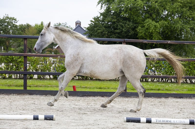 The eleven-year-old Eaton Z is not in foal now, after producing four foals in a row. She is being brought back under saddle at Stal Everse. In the past, she jumped 1.20m, showing a lot of scope. Eaton Z is a cribber. We are also auctioning her colt Pistolet (Pegase van ’t Ruytershof) in this collection. Sire is the promising stallion E-Star (Big Star), who was on his way to a top sport career with Janika Sprunger until an injury occurred. Of the 114 offspring in Horsetelex, two have already reached 1.60m level: the stallion I’m a Star and Rockstar. Granddam is the 1.35m level showjumping mare Nevident Z (Nabab de Reve). Great-granddam Kairo (Eaton du Rezidal), who jumped 1.40m herself, also produced a 1.45m and a 1.40m level horse. This damline goes back to the Almé daughter Antje, who also appears in the pedigrees of 1.60m Grand Prix horses such as Toldine, Shinto, and Carolus 47, as well as the 1.50m level horses Keaton, Adventure FBH, and licensed stallion Zacharov TN.
