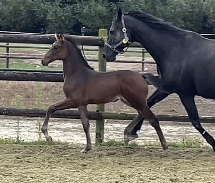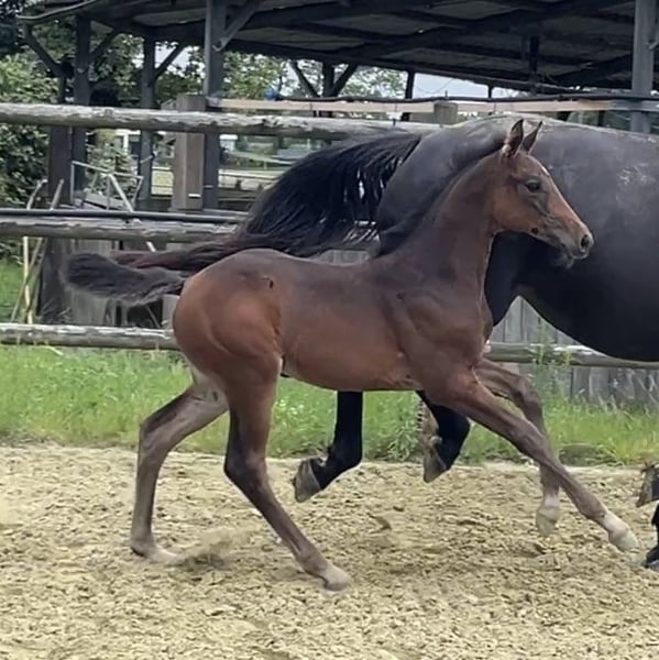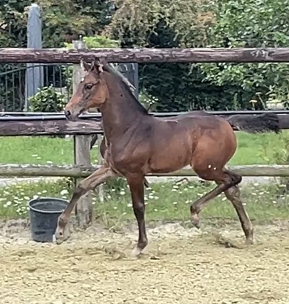 Born on June 21, 2025, Corali is a young mare with a solid foundation. Equipped with a hindquarters like a Quarter Horse, she will not lack in strength. Her father, Cote d'Or Z, has successfully jumped over 1.55m, followed by Carambole and Diamond's Billy, both of whom have jumped over 1.60m, and so on. On the maternal side, not much needs to be said: Diarado and Carthago, as well as the grandmother Pur Lady, have all made a mark in show jumping. A beautiful and promising mare is growing up here.