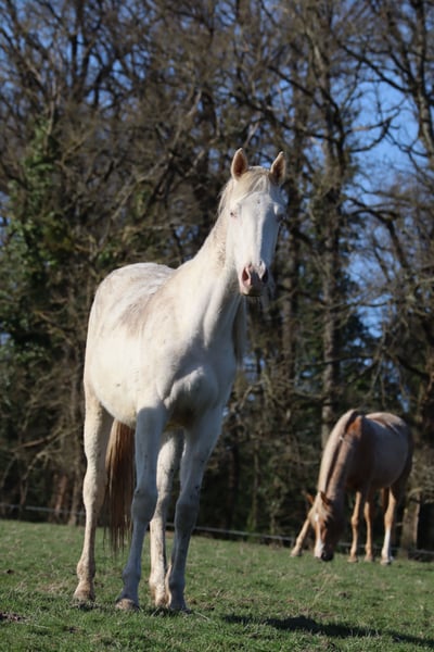 DOUBLE CREAM Z a hérité du meilleur de ses deux parents cremello, le cheval de prix DON CREAM GF et WHIPPED CREAM GF ! Tel un être féerique, elle flotte comme une licorne elfique dans le crépuscule vers le coucher de soleil... ou elle n'hésite pas à se salir, car elle vit dehors 24/7/365 avec ses congénères dans un groupe de juments de différents âges. Elle est le dernier poulain de l'icône d'élevage pour chevaux colorés Gwendolyn Gregorio, née chez nous seulement après son décès. C'est le résultat d'un développement d'élevage depuis 1978 avec un plan et un objectif clairs. Le cheval de prix DON CREAM GF (dernière image) se distingue par son arbre généalogique artistique (DREAM OF GOLD - MASCARPONE GF), qu'il représente de toutes les manières. Sa descendance en Angleterre enthousiasme. Dans notre élevage, il a toujours produit de la qualité. WHIPPED CREAM GF (WIN THE GOLD - MALTESER GOLD) a déjà des poulains qui représentent des juments d'élevage à succès en Europe - réussissant à s'accoupler avec chaque discipline souhaitée. Elle est éligible au livre principal pour Westfalen, Rheinland, Oldenburg, DSP et ZSAA de sang noble allemand. Le père maternel WIN THE GOLD a marqué une grande génération autour de l'élevage Falkenhorst avant de partir pour l'Australie, où il continue d'enrichir le monde des chevaux de sang chaud éclaircis. Notre objectif d'élevage est de produire des chevaux de loisir polyvalents pour le propriétaire de chevaux terre-à-terre, qui, en tant que bon cavalier de l'enseignement classique, favorise et gymnaste les animaux en accord avec leur développement. Les poulains grandissent en groupes mixtes sur de grands pâturages, vivant dehors toute l'année. Le sol plutôt pauvre renforce les jeunes, qui sont nourris en fonction de leurs besoins avec un accès libre à du foin bio et de la paille, ainsi qu'à des minéraux avec des compléments énergétiques adaptés. Ils sont régulièrement vermifugés (ZSE) et leurs pieds sont maintenus en forme par un podologue équin. L'élevage est géré de manière holistique et principalement par des méthodes de médecine naturelle. Ils ont un contact quotidien avec nous, les humains, et se réjouissent de cela. Ils connaissent déjà beaucoup de choses du quotidien, que ce soit dans un parcours au sol, un round pen ou sous le solarium. Cependant, nous devons les transmettre - seulement entre de bonnes mains. Passeport Zangersheide "main section" (livre principal) et enregistrement IFCE (Facteur Selle Francais). Pour tout autre renseignement, veuillez nous contacter directement. L'animal peut rester pour l'élevage à des conditions très avantageuses. Le propriétaire a accès à nos mobile-homes dans l'élevage pour des visites régulières.