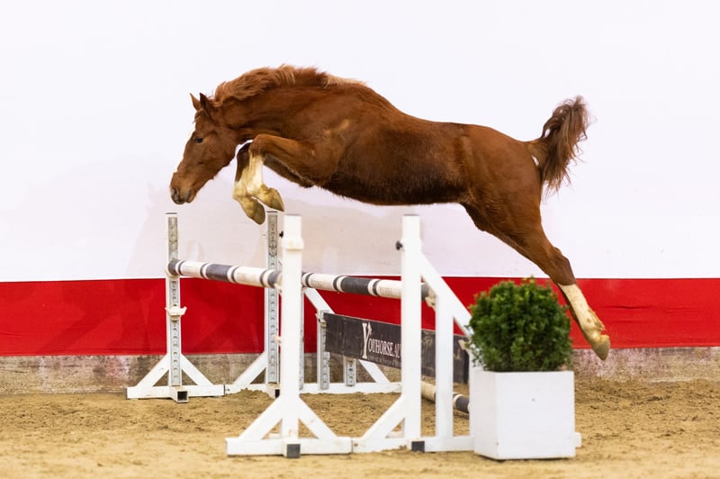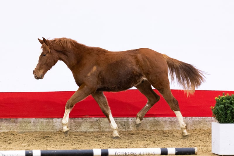 Very interesting yearling with engine, technique and canter Excellent van de Bosschel is exceptionally well bred and will only turn one year old. Even at this young age, he already shows a very good jumping technique, with correct use of the front end and a strong technique behind. He trots loosely and freely, shows a clear natural engine and has a big canter. He clearly displays blood and athletic ability. A very interesting yearling in which quality and talent are already evident. Sire Emerald van ’t Ruytershof (Diamant de Semilly x Carthina Z) competed at international 1.60m Grand Prix level and belongs to the absolute world elite. He won the World Cup Final in Göteborg and multiple CSI5* Grand Prix classes. Emerald is a BWP Ambassador and licensed with nearly all major studbooks. He is renowned for passing on blood, reflexes, scope and carefulness and has produced many international Grand Prix horses, including Imothep van ’t Voorhof (1.70m), Kasper van het Hellehof (1.70m) and Ictus d’Emma (1.65m). Damline The dam is Carrera de Muze (Darco), herself competing at 1.45m level and descending from the world-famous Muze damline. Darco is a BWP Ambassador and one of the most influential showjumping sires of all time, with countless international 1.60m Grand Prix offspring. This direct damline has produced an exceptional number of international sport horses and approved stallions: – Caipiranja (Taran de la Pomme), international 1.60m Grand Prix – Demoiselle de la Pomme (Erco van ’t Roosakker), 1.45m – J’Adore van het Schaeck (Vagabond de la Pomme), international 1.60m – Polle M (Thunder van de Zuuthoeve), international 1.55m – Cazan Z (Comme Il Faut), approved BWP stallion, international 1.60m – Orly-Chin de Muze (Espri), approved stallion, 1.40m – Quel Hero de Muze (Power Light), approved stallion, 1.45m – Querlybet Hero (Baloubet du Rouet), approved stallion, international 1.60m – Loro Piana Boyante de Muze (Kashmir van Schuttershof), international 1.60m Further back, this damline shows an extraordinary concentration of international sport up to 1.60–1.70m level, with numerous approved stallions and CSI5* performers. A damline recognised worldwide as absolute top level in showjumping. This horse was already auctioned and awarded last month, but unfortunately the buyer did not meet his obligations. This is of course very disappointing for both the seller and the auction, because reliability and agreements made are of great importance to us. Important to know: this does not detract from the horse itself. It remains a fantastic horse with an honest character, a correct veterinary inspection and the talent that he shows again and again. Although re-offering can sometimes give the wrong impression, we fully support this horse. In our opinion, a unique opportunity for those looking for a better horse!