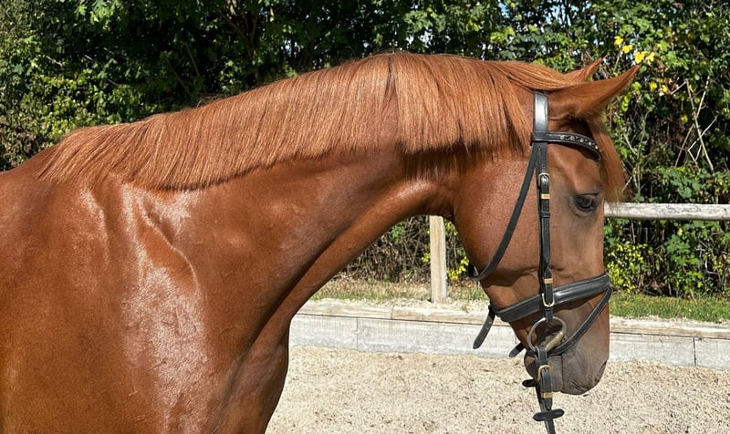 For sale is a stunning chestnut mare, born in 2021, currently measuring 15.8 hh. She comes from a renowned Zangersheide breeding program and impresses with her noble appearance as well as her promising dressage and show jumping qualities. The mare is ideal for ambitious riders, whether for young riders or, for example, for a mother-daughter pair, seeking a reliable partner for dressage or jumping. In her basic training, she is very attentive and eager to learn, with three excellent gaits. She is a true sweetheart in handling! Calm, gentle, and very fond of being pampered. She is familiar with children, dogs, and tractors, and remains completely relaxed in all situations. Due to lack of time, we are looking for a new, loving home where she can continue to develop her full potential. Please feel free to contact me for more information or to arrange a viewing.