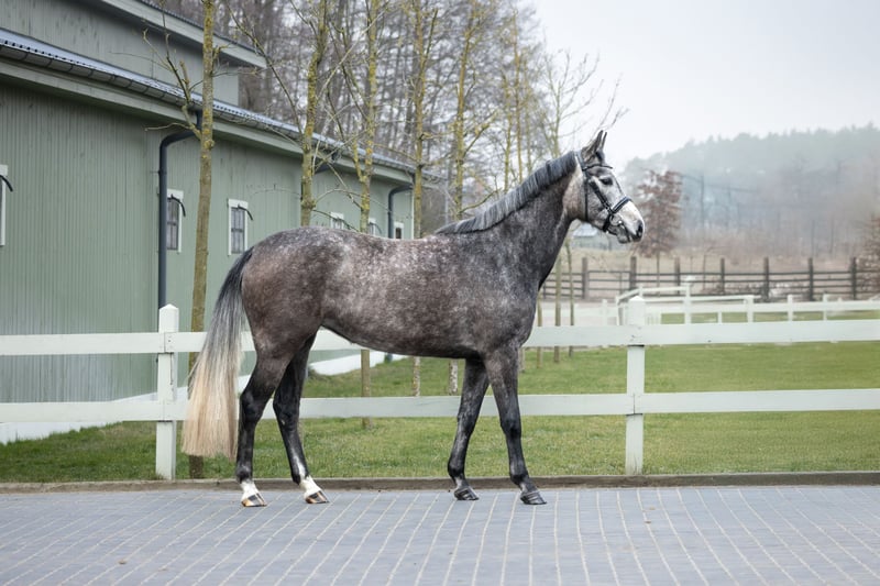 Cornthina Diamond ML Z is also a gray mare by the world-famous stallion Cornet Obolensky, who, although born in Belgium, has established his sporting and breeding career in Germany. At the international Grand Prix level, he was ridden by Marco Kutscher. The dam is a full sister to the world-renowned athlete (including 2nd place at the World Championships for 6-year-old horses and a finalist at the Olympic Games under Harrie Smolders), as well as an excellent breeding stallion, Emerald van't Ruytershof. The maternal family from which she descends has gained worldwide recognition in recent years, producing outstanding horses such as Nixon van't Meulenhof, Uncle Joe van't Meulenhof, and Pegase van't Ruytershof.