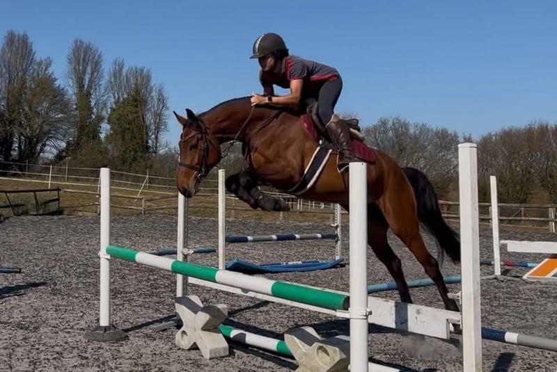 5yo 15.3hh compact sports horse Bay mare Pedigree is littered with 1.60m horses. Zangershiede bred by Kasanova de la pomme (Bamako de muse) out of a mare directly by diamant de semilly. Good to shoe, hack, clip, catch etc. Clean x-rays Currently schooling beautifully on the flat, hacking, and jumping British novice and discovery at shows. Showing lovely technique over a fence and has lots of power off the floor. She may be small but easily makes normal horse distances. Konga is a very intelligent mare and rapidly absorbs information. She is forward going and responsive to the aids both under saddle and ridden. She is a lovely mare to be around and would suit someone looking to produce her for any discipline. Please call or WhatsApp for more information and videos 07714793645