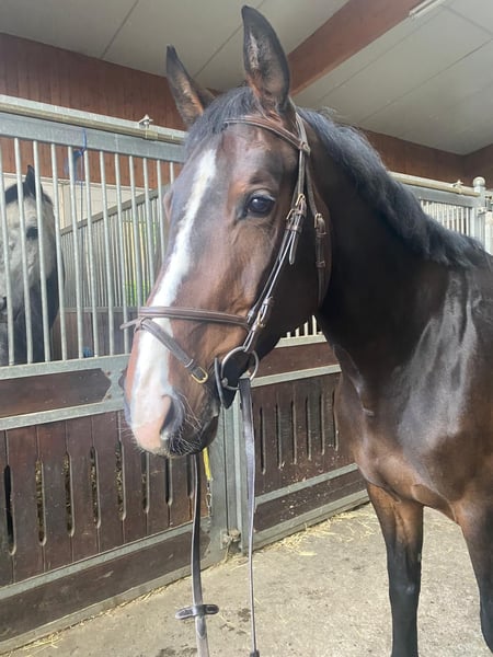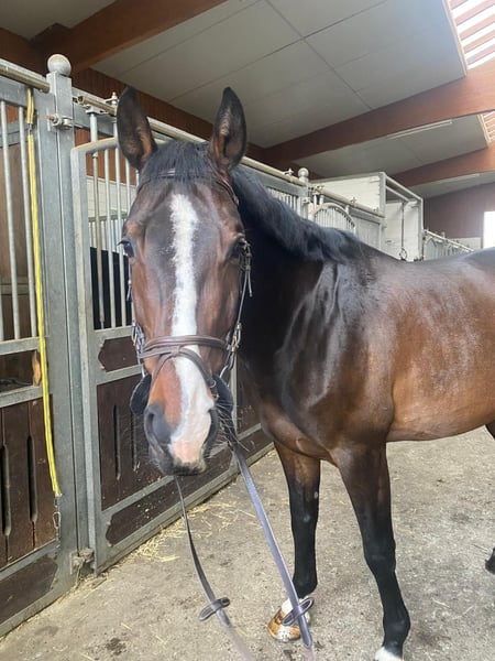 We are selling our 7-year-old mare by Cornet Obolensky out of a Eurocommerce Berlin dam. This mare has already gained competition experience and has been awarded 8s in show jumping tests up to class M. Additionally, she has placements up to 1.25 meters and possesses a good fundamental attitude. She is always gentle and friendly in handling and strives to do everything correctly in the arena. She can also be used for leisure riding, as she is neither spooky nor hesitant. She is suitable for amateurs and young riders who are willing to adapt to the horse, as she can become strong during jumping.