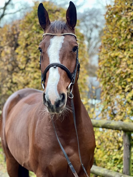 Zum Verkauf steht eine 7 jährige, 1,76 m große, brave Stute. ( D‘Aganix 2000 Z x Acorado I ) Dikira ist eine liebe, wache Stute mit einem natürlichen „Go“. Im Umgang ist sie brav und gut erzogen. Sie möchte immer alles richtig machen und will immer auf die andere Seite vom Sprung. Auf dem Turnier zeigt sie sich gelassen und konnte sich bereits bis 110cm platzieren und ist bis 120cm fehlerfrei gelaufen. Außerdem wurde sie bereits von einem 12 jährigen Mädchen mit Ausbindern geritten und hat auch einen kleinen Parcours gesprungen, auch das macht sie sehr lieb. Dikira ist zwar „robust“, allerdings würden wir sie trotzdem als ein „Amateur“ oder „Mädchenpferd“ beschreiben. Im Gelände, sowie in der Halle oder draußen auf dem Platz, ist sie immer brav. Aktuelle Videos können auf Anfrage versendet werden. Dikira ist regelmäßig geimpft und entwurmt worden, Schmiede und Verladefromm. Zur Verfügung stellen kommt nicht infrage. Anfragen ausschließlich per WhatsApp oder telefonisch unter: 015228810407
