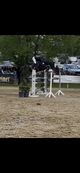 Verkauft wird eine 8 j.Rappstute (Dominator X.Quasimodo Z). Die Stute ist hoch bis 1,30 m platziert, hat 1,15 m und 1,20 m springen gewonnen swird die nächsten Wochen die nächsten Schritt in die nächst höhere Klasse gehen. Sie wird ausschließlich von einem Amateur geritten. Sie ist sehr engagiert am Sprung mit einer Top Bascule und sehr viel Vorsicht. Wir haben die Stute selber gezogen und ausgebildet. Bei Fragen telefonisch oder per WhatsApp unter 01713159374