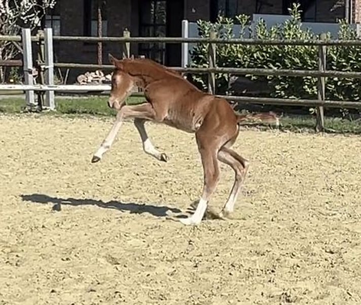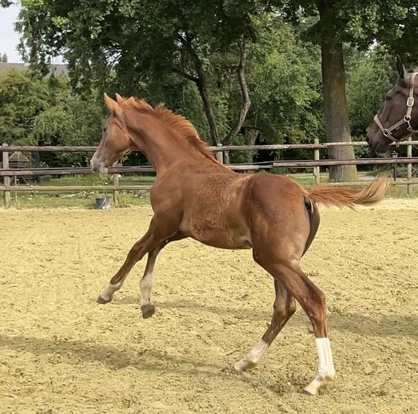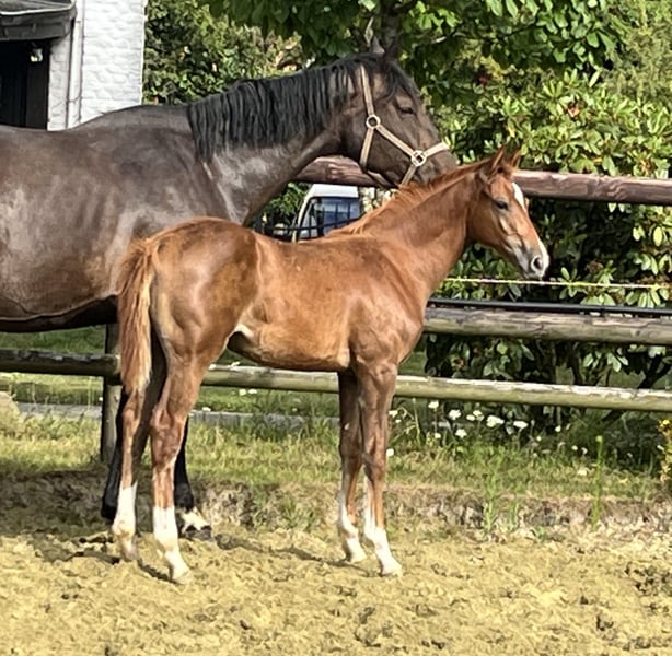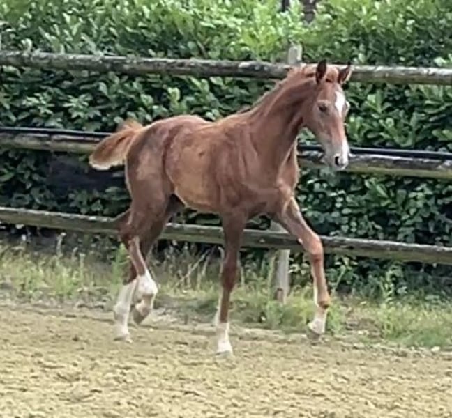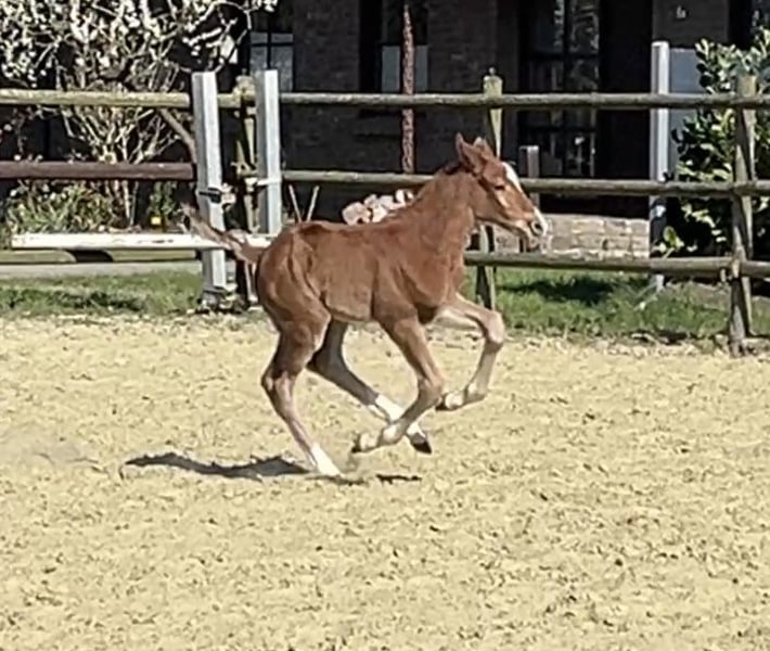 Jackson MK ist am 02.04.25 geboren und will nicht nur körperlich groß werden! Er ist nicht nur äußerst hübsch, sondern steht auch auf einem unglaublich stimmigen und gutem Fundament. Er lernt sehr schnell ist neugierig und zugänglich. Seine Mutter ist eine großrahmige Stute mit einem Stockmaß von 1,76m und viel Talent am Sprung. In diese Fußstapfen will er rein.