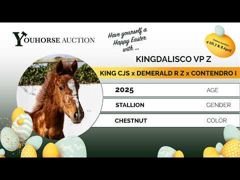 Kingdalisco VP Z is een stoere jaarling die nog maar kort van de moeder af is. Hij laat al een hele goede galop zien met veel balans, wat later zeer comfortabel zal aanvoelen onder het zadel. Hij beweegt lichtvoetig en is snel van de grond bij het springen. Een jaarling die kwaliteit uitstraalt. Een echte ruwe diamant die nog volledig in ontwikkeling is, maar nu al laat zien wat erin zit. Vader King CJS springt op 1.60m niveau en is een zoon van Action-Breaker (1.60m), uit de sterke Heartbreaker-lijn. Een hengst die vermogen, instelling en kwaliteit doorgeeft. Moeder Dalisca VP Z is een dochter van Demerald R Z (1.50m) en komt uit een sterke prestatielijn. De moederlijn brengt meerdere paarden op niveau: Chanel 353 – 1.45m Campari 220 – 1.45m Drago G.S. – goedgekeurde hengst, 1.45m Een stam met vermogen en bewezen prestaties.