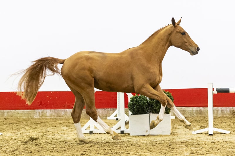 A beautiful chestnut with presence. A true powerhouse showing scope combined with a calm character. He easily jumps a bigger fence and demonstrates that power and attitude go hand in hand. A horse with natural strength and good overview over the fences. Sire Orak d’Hamwyck (1.60m) is by Scuderia 1918 Tobago Z (1.70m) out of a Toulon damline. Orak competes at 1.60m level with placings including CSI5*-W Bordeaux and CSI3* 1.55m Cabourg. Tobago Z is a proven 1.70m Grand Prix performer. Dam For Fun (by For Pleasure 1.60m) comes from the exceptional T&L family, producing multiple 1.45m–1.60m international performers. Second dam Tsarina (by Corofino I 1.60m) produced several 1.60m horses including Just A Gamble (1.60m winner CSI4* Wellington), Houston (1.60m CSI5*) and Pegasus Deau Re Mi (1.60m CSI4*). A damline consistently producing at 1.45m–1.60m level.