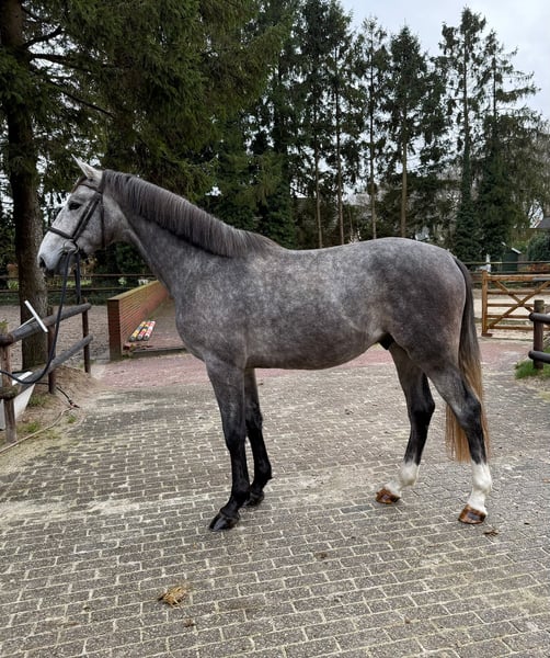 Nearly 3-year-old colt by Grand Prix stallion Million Dollar – top bloodlines, excellent potential & fully X-ray approved ⭐ This highly promising young colt is sired by the international Grand Prix stallion Million Dollar and comes from a proven Corrado I dam line — a combination renowned for scope, rideability, and top sport talent. He has already been introduced to lunging and responds very well to work. He has not yet been backed, offering the opportunity to start him exactly as you desire. He is fully X-ray approved, including the back, neck, and legs. The dam of this colt has produced several successful sport horses, such as: King Zappa (Zapatero VDL) – competing at 1.40m level D.A. Nixon (Entertainer) – successful in CCI3* eventing This young stallion exhibits a powerful canter, quick reflexes, and plenty of athletic ability. An ideal horse for the ambitious rider or breeder seeking quality and a proven pedigree.