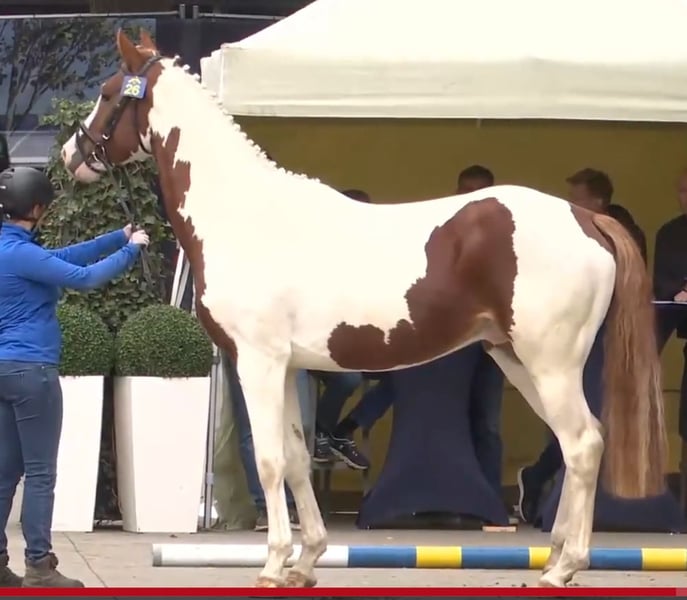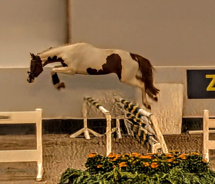 **Sales Advertisement: Zangersheider Stallion** For sale is an impressive Zangersheider stallion, born in 2022. This beautiful pinto captivates with his striking appearance and friendly demeanor. With a height of 168 cm, he is the ideal size for ambitious riders. The stallion shows great potential in jumping and is ready to dive into the world of equestrian sports. He is well-mannered and has already gained some initial experiences, making him a promising partner for competitions and training. He is suitable for both experienced riders and ambitious riders looking for a talented young prospect. If you are interested or need further information, please feel free to contact me. Don't miss this opportunity to meet an exceptional stallion!