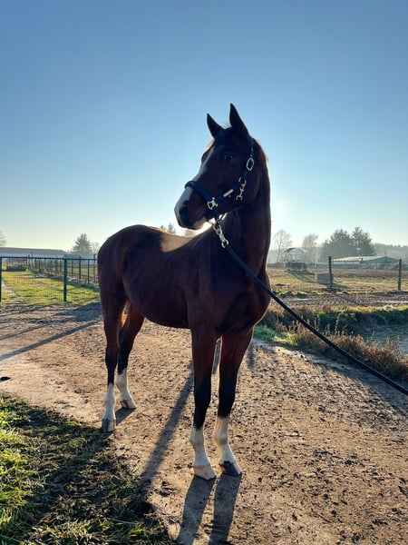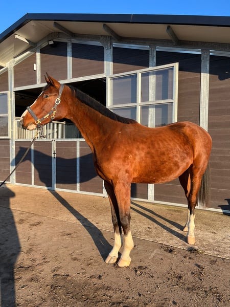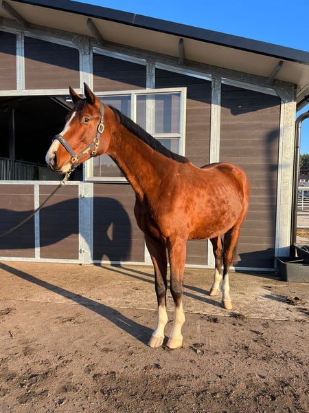 A stunning Zangersheide stallion, born in 2023, is available for sale. Chestnut with an impressive height that will ultimately exceed 16.1 hh (170 cm). Perfect for those seeking a versatile and elegant sport horse. Excellent conformation, healthy and full of energy. Exceptional scope and power over jumps. Very strong pedigree and dam line. First jumping attempts are shown in the video. Please contact me for further details and to arrange a viewing. Additional information available upon request. https://horsetelex.com/horses/pedigree/2504364/beyond-the-fire-t40-z